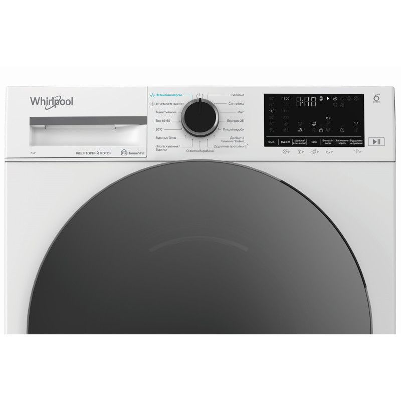 Пральна машина Whirlpool фронтальна, 7кг, 1200, A, 49.6см, дисплей, пара, інвертор, люк чорний, білий