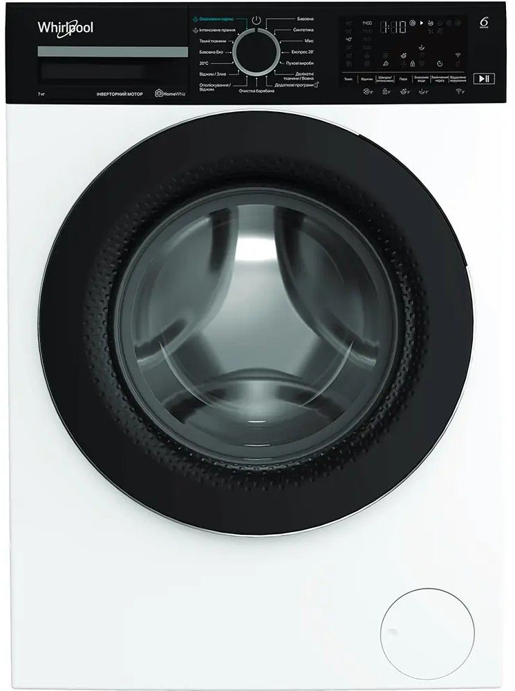 Пральна машина Whirlpool фронтальна, 7кг, 1400, A, 49.6см, дисплей, пара, інвертор, люк чорний, білий