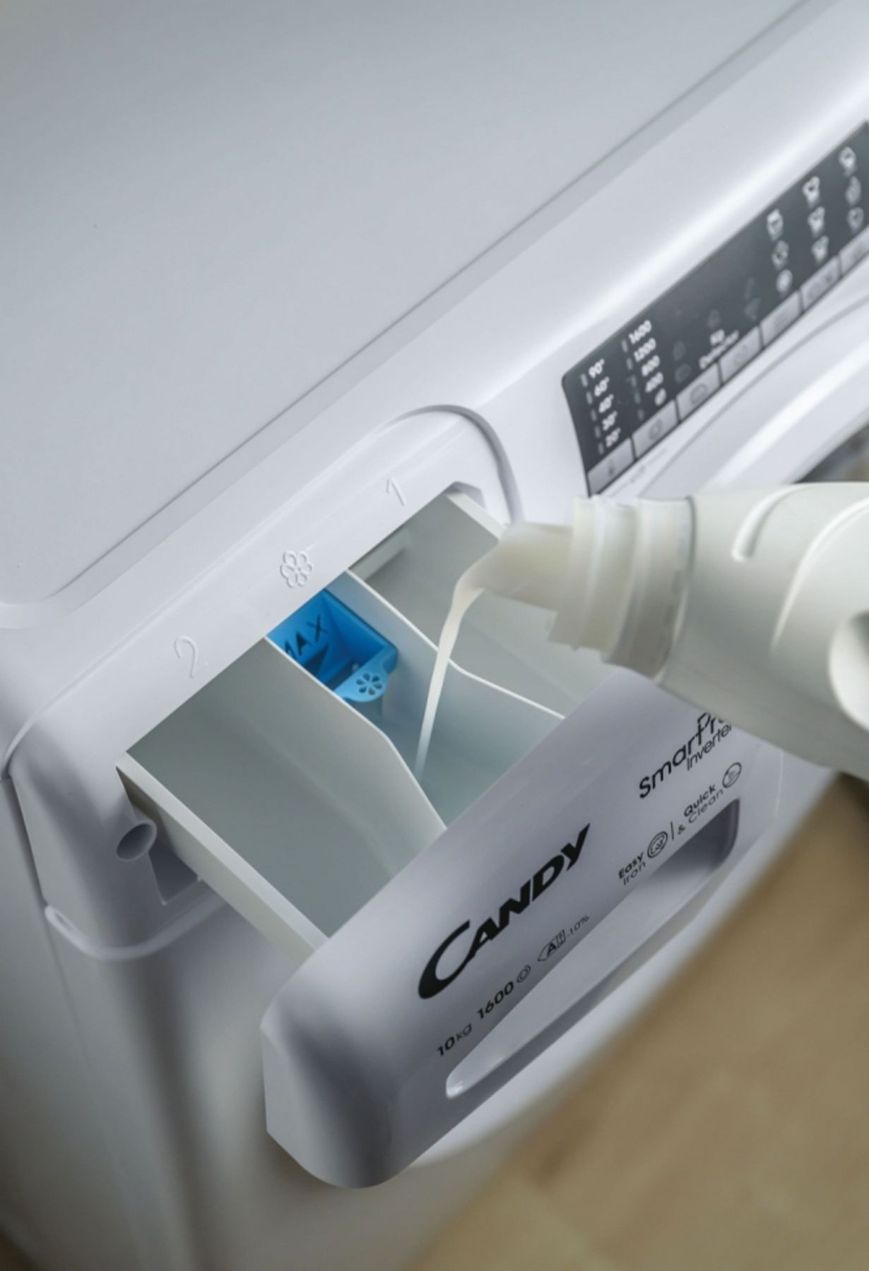 Особливості:Старт / Пауза з можливістю дозавантаження, Wi-Fi, Вибір швидкості віджиму, Мова пристрою символьна панель, Вибір температури прання
