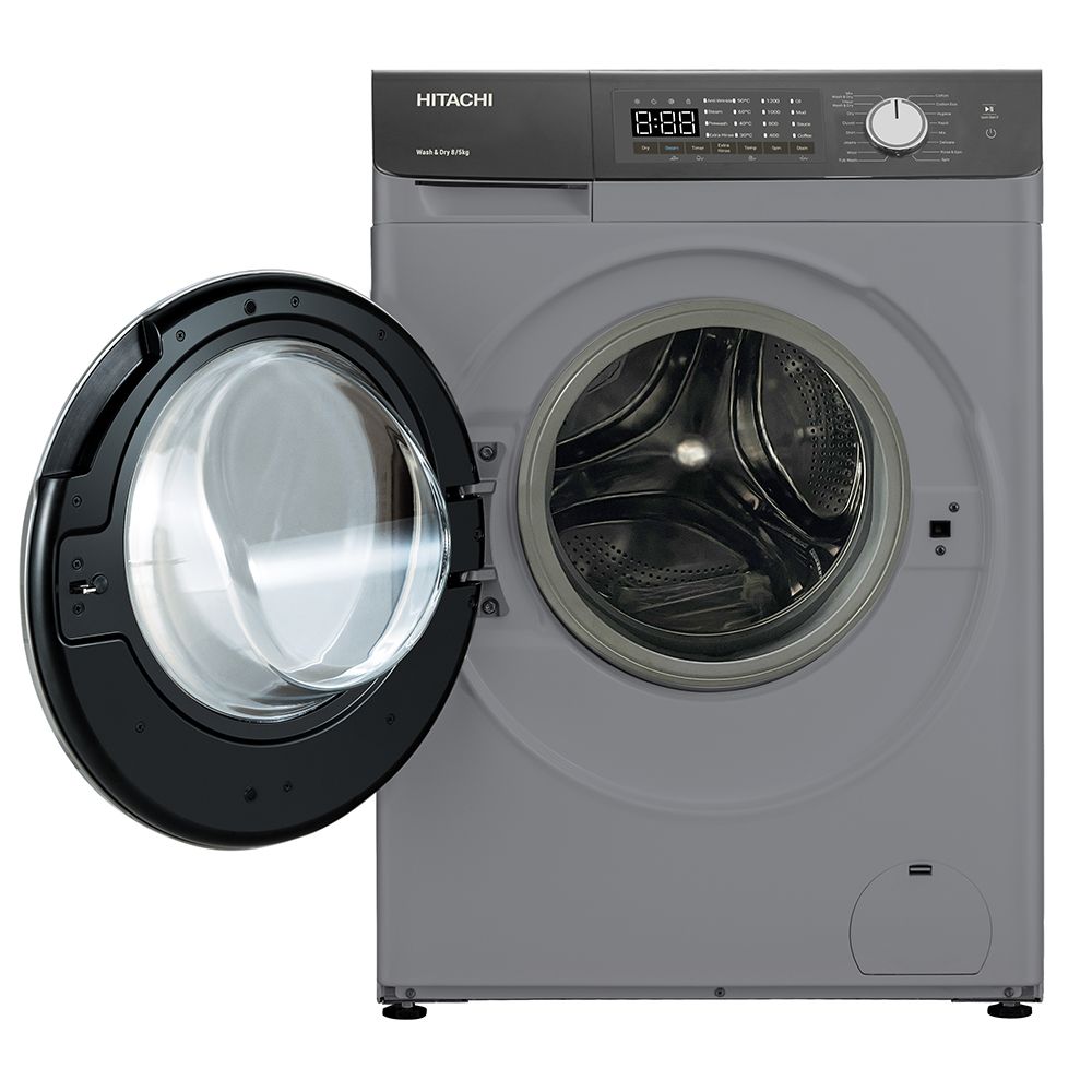Прально-сушильна машина Hitachi фронтальна, 8(5)кг, 1400, A, 60см, дисплей, пара, інвертор, cріблястий