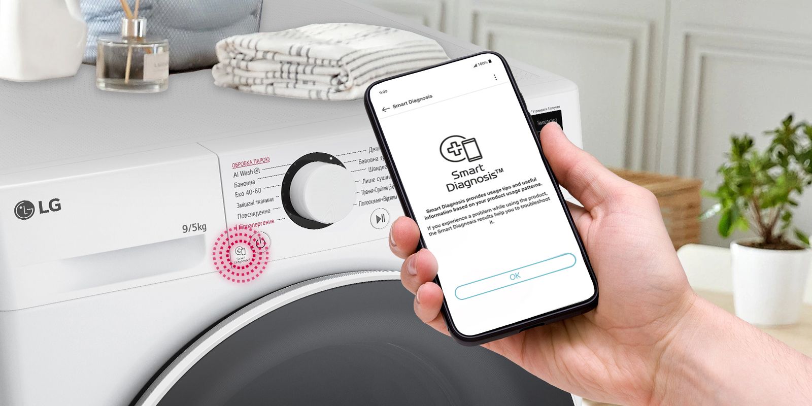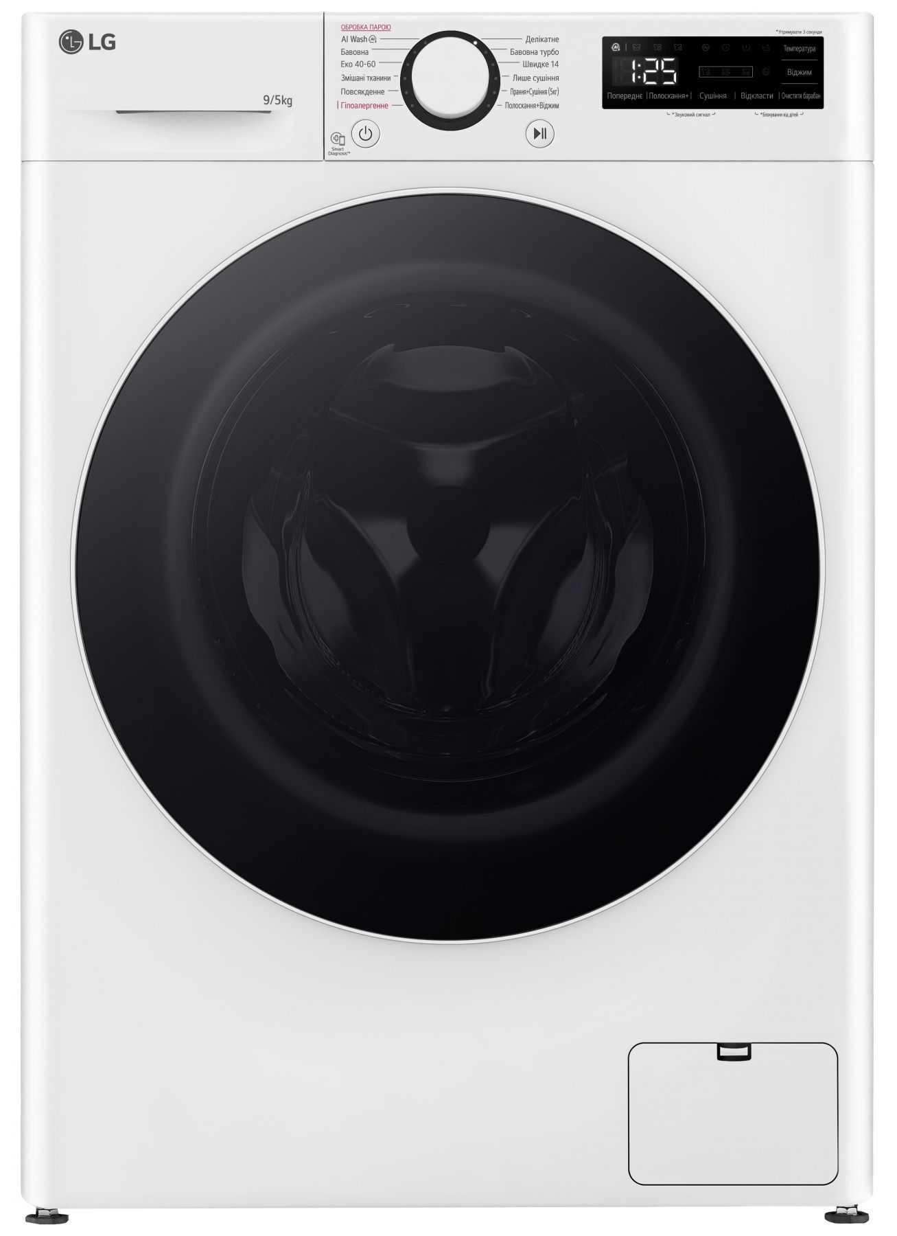 Прально-сушильна машина LG фронтальна, 9(5)кг, 1200, А, 48см, дисплей, пара, інвертор, білий
