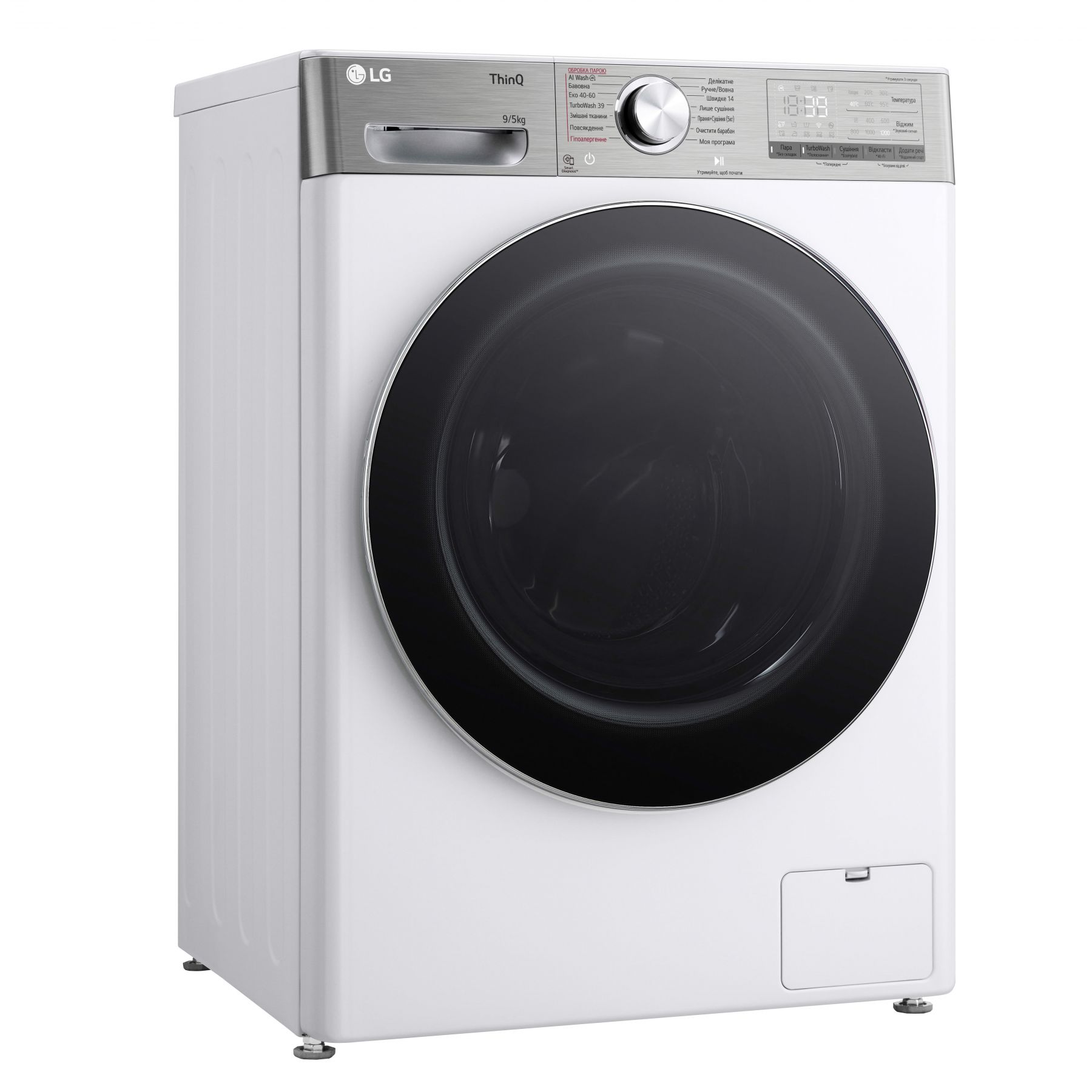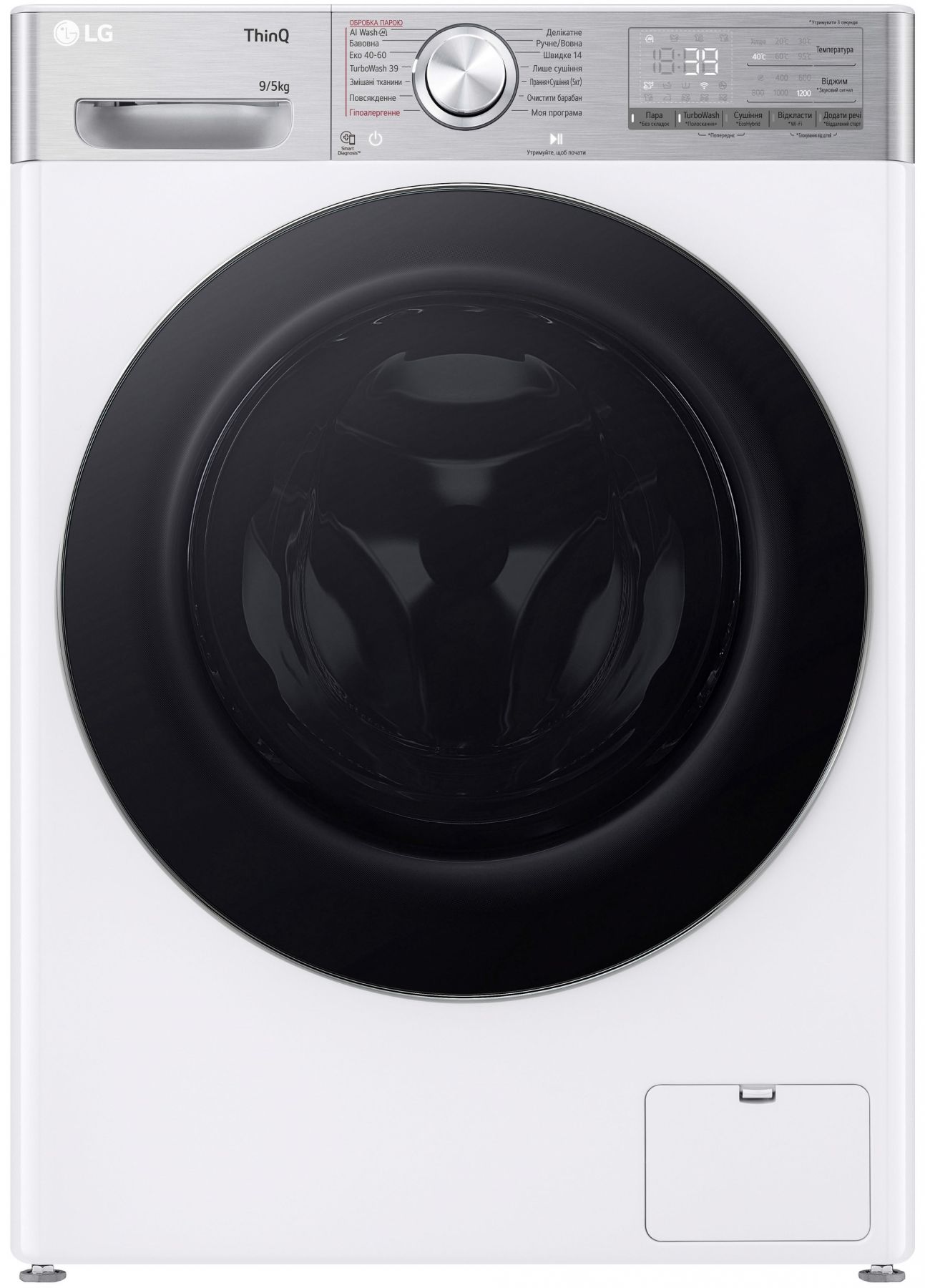 Прально-сушильна машина LG фронтальна, 9(5)кг, 1200, А, 48см, дисплей, пара, інвертор, EcoHybrid, білий