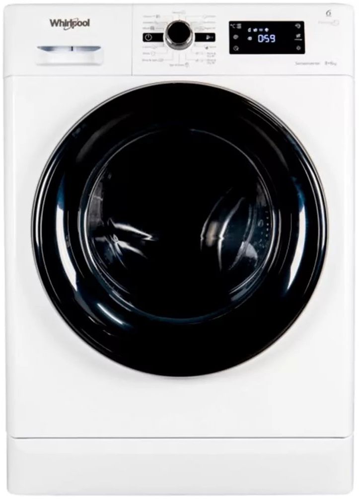 Прально-сушильна машина Whirlpool фронтальна, 8(6)кг, 1400, A, 60см, дисплей, пара, інвертор, білий