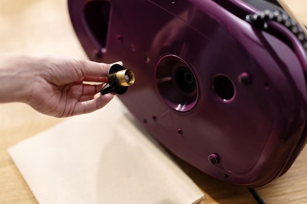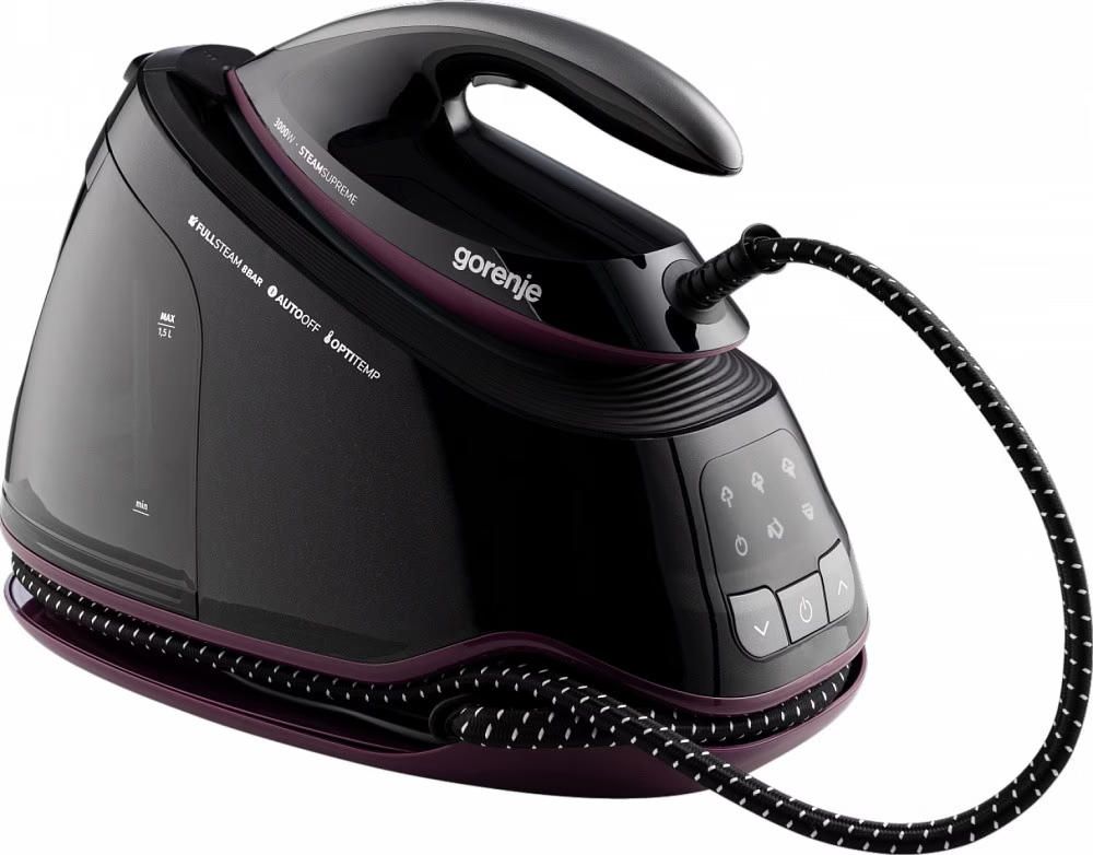 Парогенератор Gorenje потужністю 3000 Вт має знімний резервуар об’ємом 1,5 л, постійну подачу пари 160 г/хв і паровий удар 480 г/хв. Оснащений LED-дисплеєм, цифровим керуванням, системою проти накипу, індикатором зносу картриджа, автоматичним вимкненням та керамічною підошвою. Тиск пари – 8 бар.