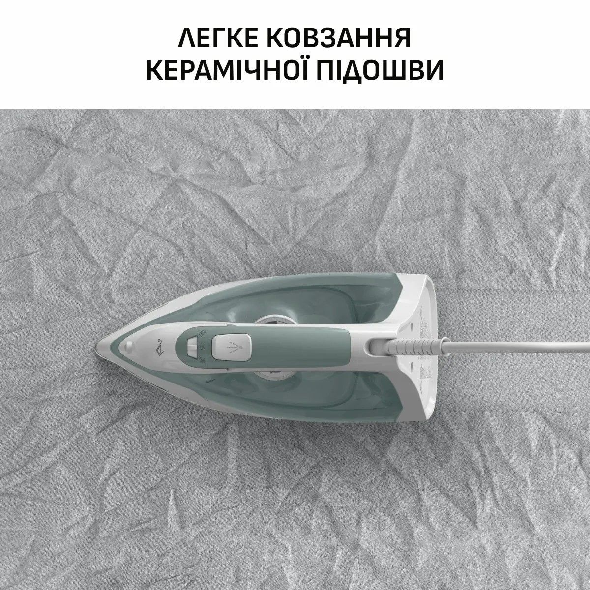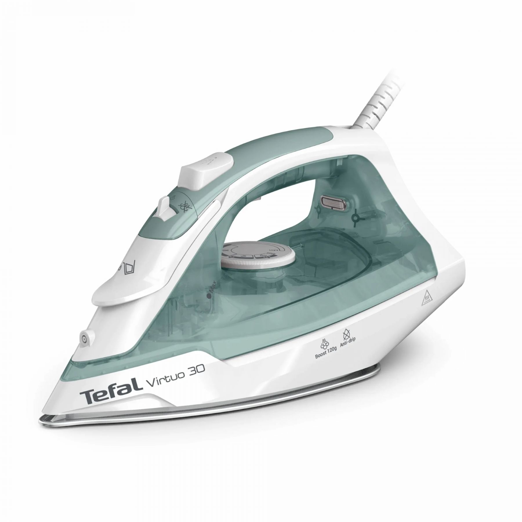 Праска Tefal Virtuo 30, 2000Вт, 240мл, паровий удар -120гр, постійна пара - 27гр, керам. підошва, біло-зелений