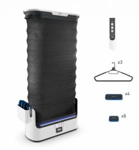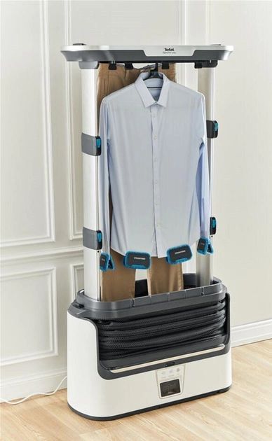 Прасувальна пара шафа Tefal CARE FOR YOU YT4050E1 використовує силу натуральної пари для розгладження складок, освіження, дезінфекції та сушіння за допомогою автоматичного енергозберігаючого процесу, який спрощує догляд за одягом. Відкрийте для себе революційний догляд за одягом без зусиль: просто розмістіть до 3 предметів для розгладження складок і всього за 10 хвилин – чудовий результат.