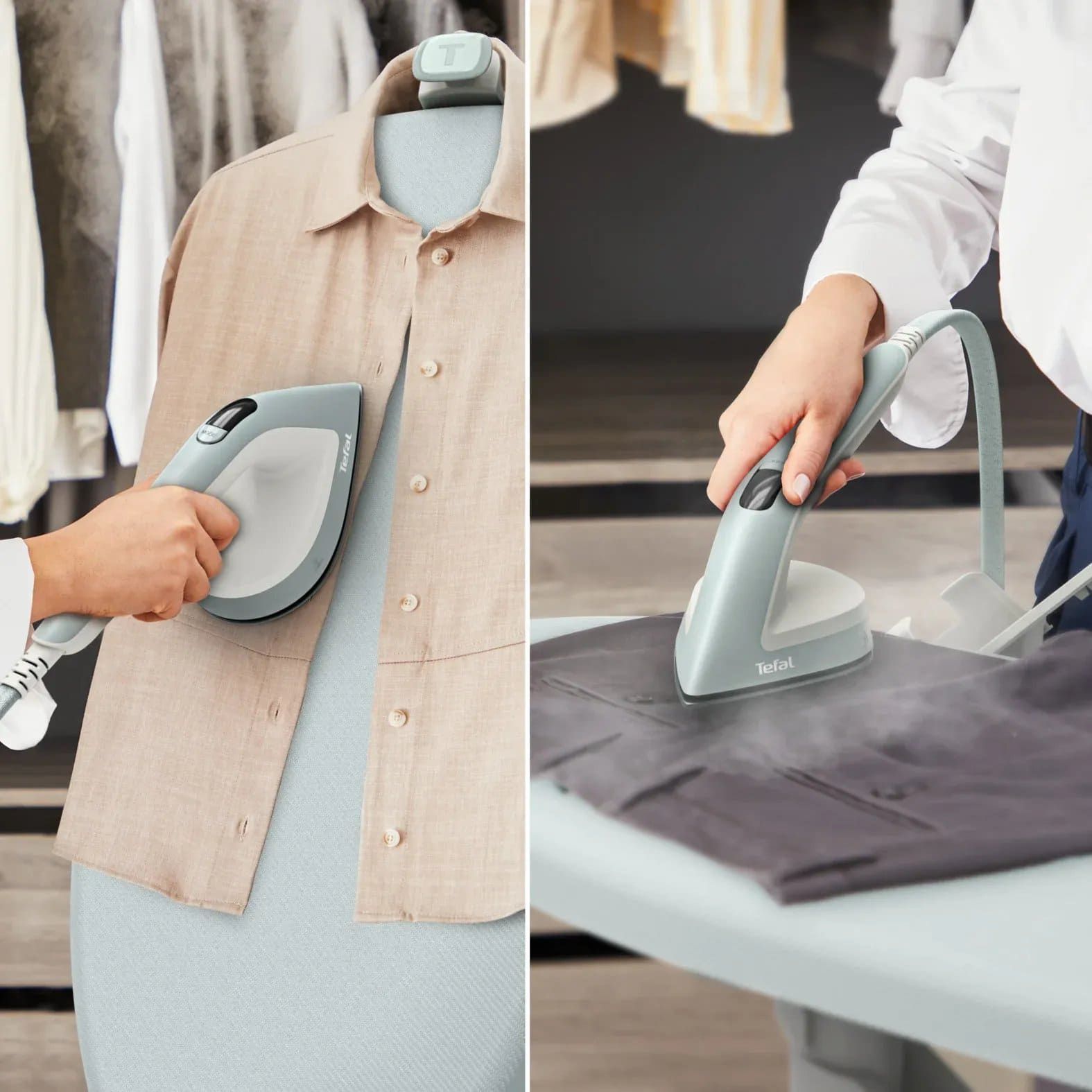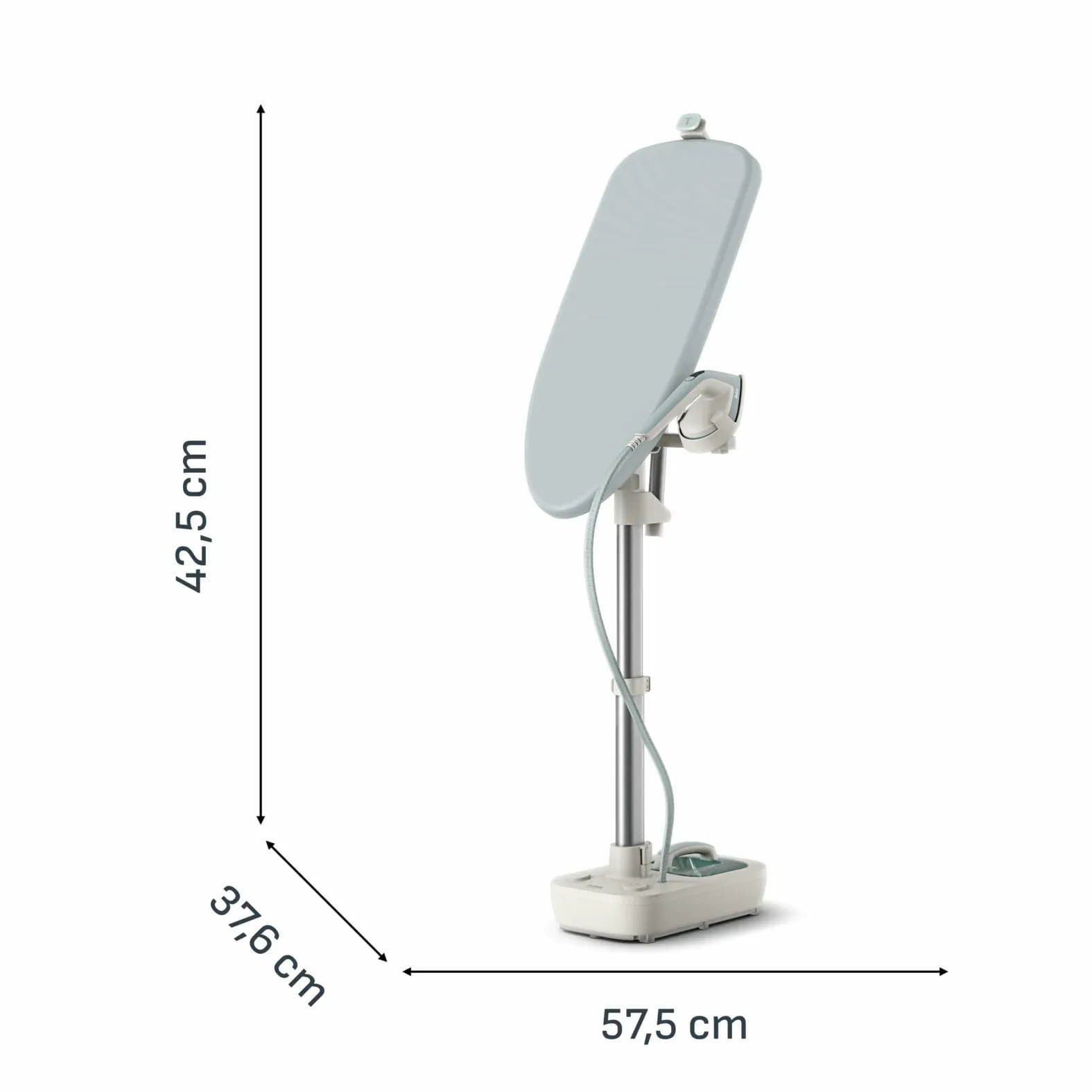 Прасувальна система Tefal Steam Board 450 поєднує відпарювання та прасування в одному рішенні з інтегрованою дошкою. Конструкція підтримує вертикальне й горизонтальне положення без окремого встановлення. Потужність 1800 Вт, тиск пари 6 бар, постійна подача пари 45 г/хв і паровий удар 90 г/хв забезпечують ефективну обробку різних типів тканин. Система нагрівається за 70 секунд і готова до роботи без тривалого очікування. Знімний резервуар на 1,5 л та мобільна конструкція спрощують щоденне використання.