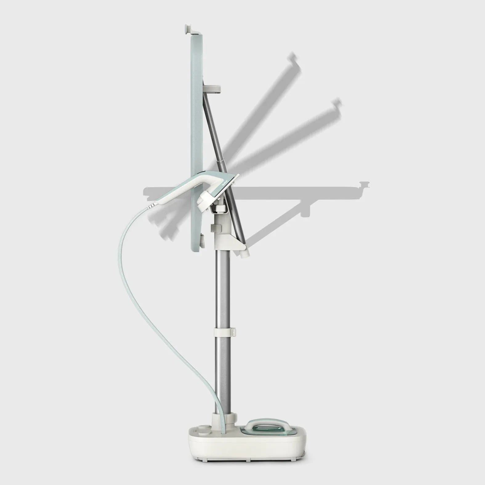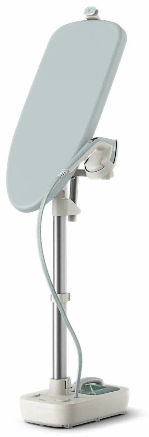 Особливості:гачок для підвішування одягу, система захисту від накипу, нагрівання за 70 секунд, індикатор готовності подачі пару, Знімний резервуар для води, знімна база, 3 налаштування подачі пари, інтегрована дошка, вбудовані коліщата для зручності переміщення, індикатор необхідності очищення від накипу, підставка для праски