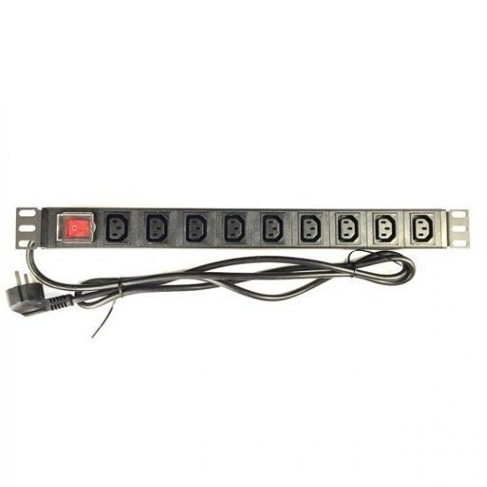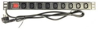 Пристрій розподілу електроживлення MIRSAN 1U, блок 9хC13, без вимикача, вилка Schuko, алюмінієвий корпус, кабель 1.8 м