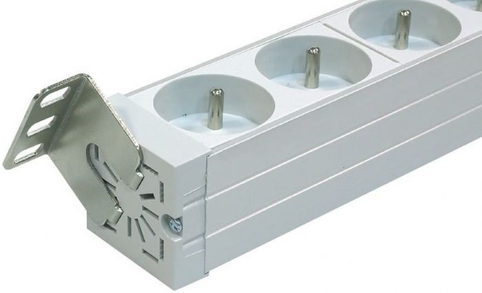Пристрій розподілу електроживлення ZPAS 19" 1U 9D Shuko без вимикача, вилка С14. Знімні металеві монтажні скоби. Можливість встановлення планки на 4 позиції.