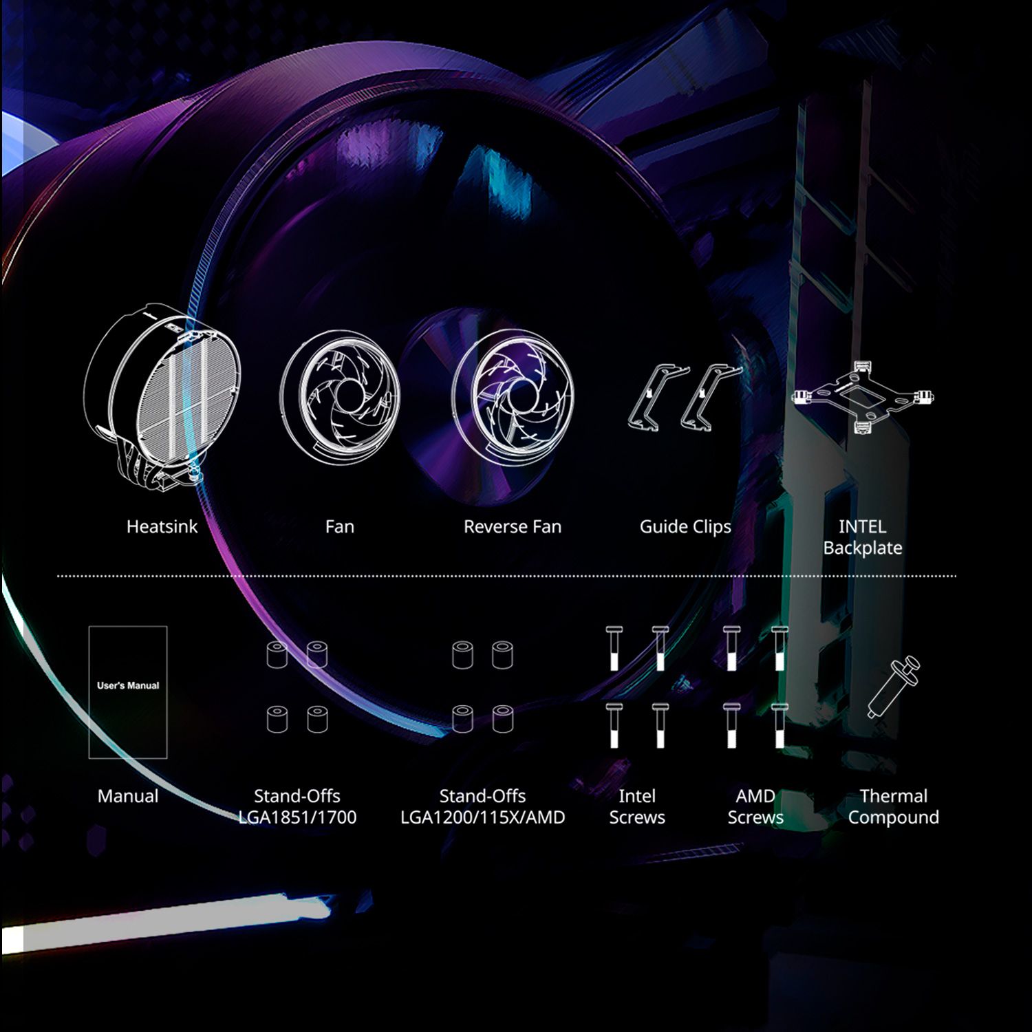 Процесорний кулер Zalman ZET5, ARGB LGA 1851, 1700, 1200, 115x, AM5, AM4, 4pin PWM, 3pin+5VARGB, TDP200W, білий