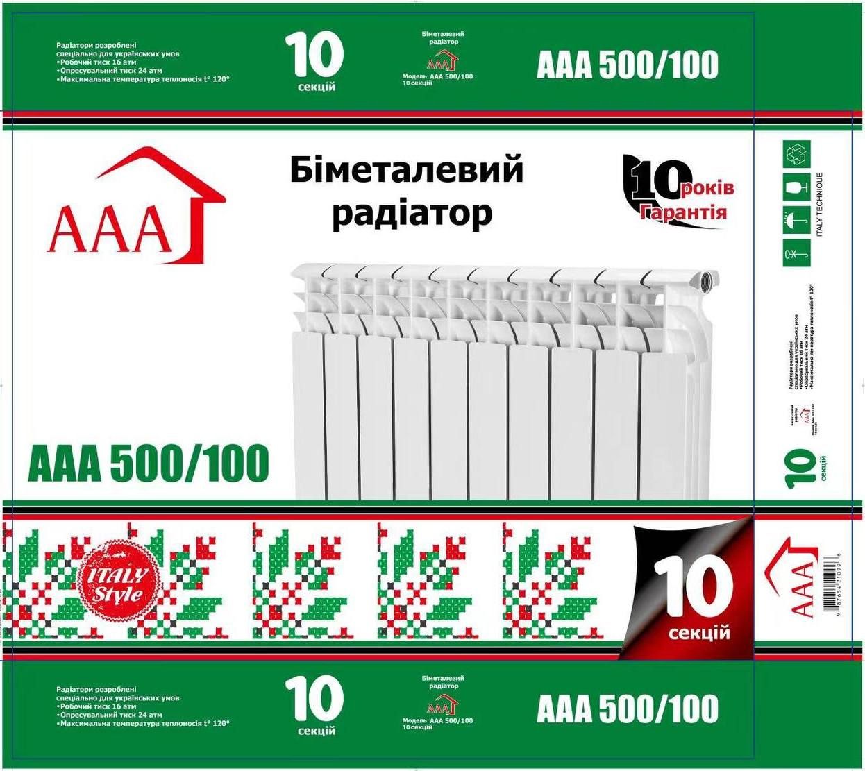Радіатор біметалевий AAA 500/100 10 секцій 546x80x96мм бокове підкл. 1900 Вт білий