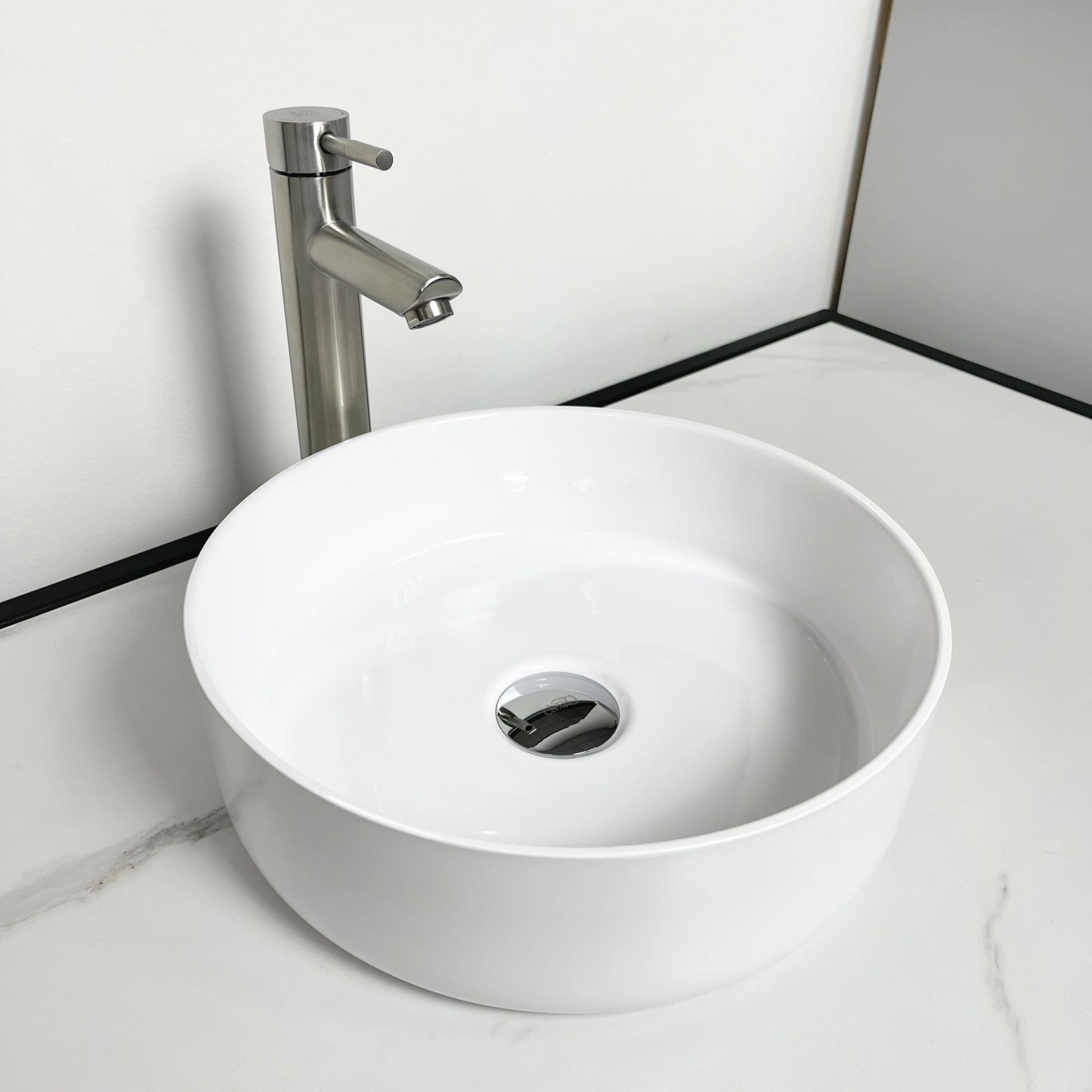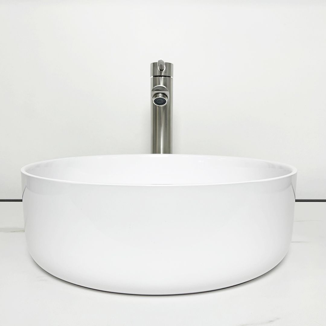 Раковина, умивальник Adamant ARENA, штучний камінь, кругла, без отвору для змішувача та переливу, 360х113мм, накладний, білий