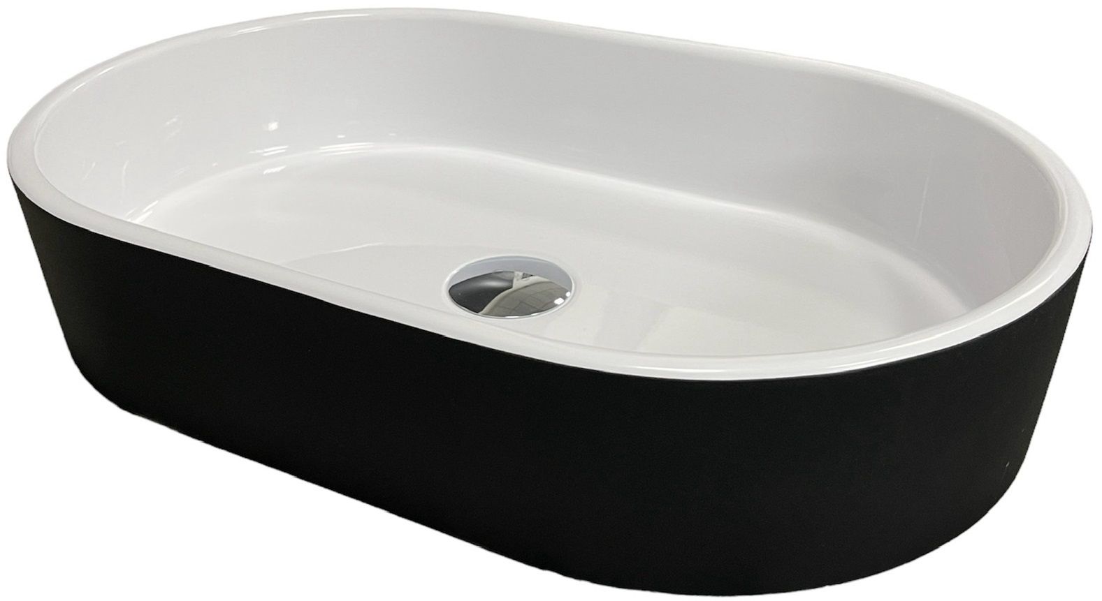 Раковина, умивальник Adamant BESTE NEW, штучний камінь, овальна, без отвору для змішувача та переливу, 540x350x11мм, накладний, чорно-білий