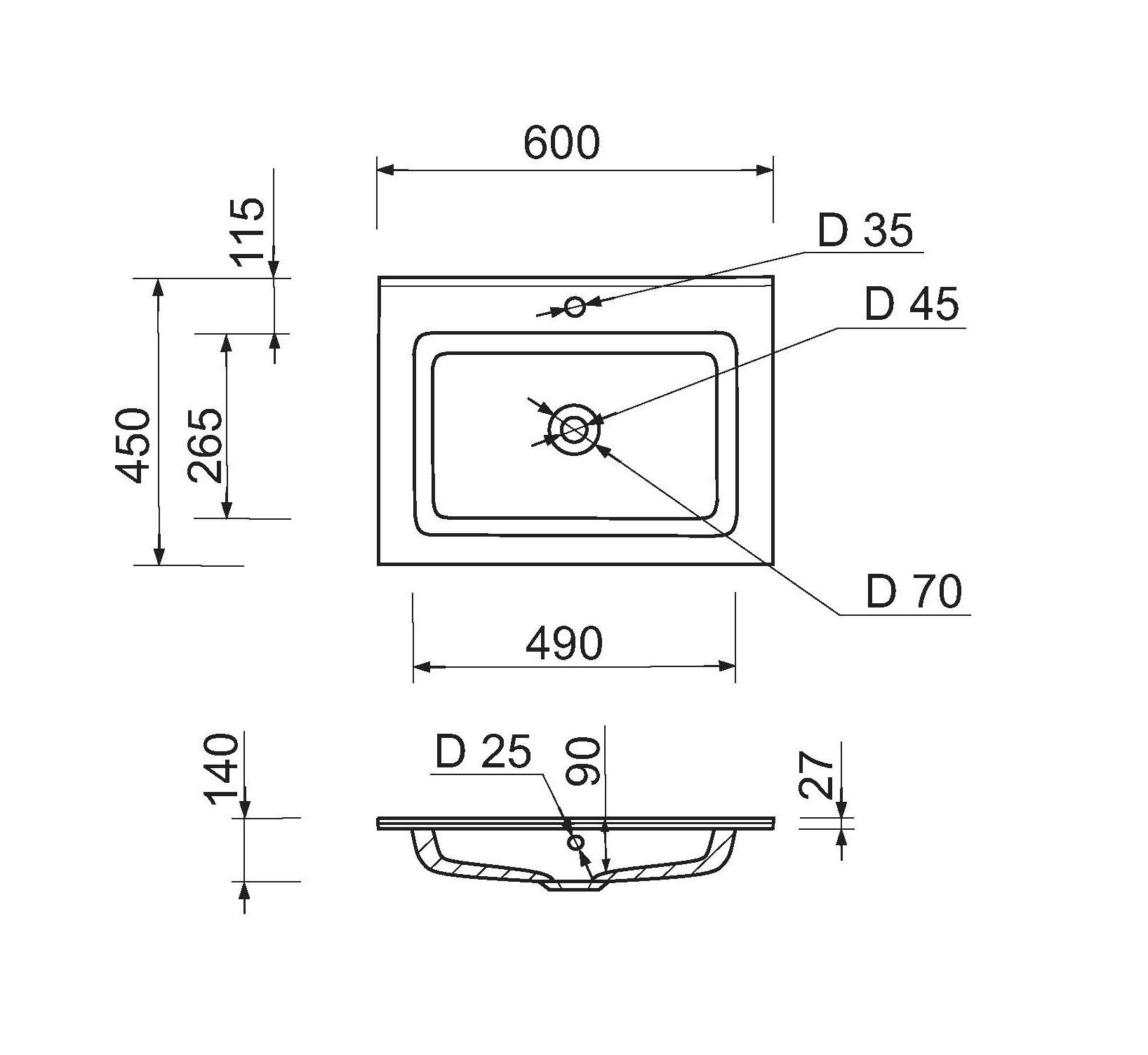 Раковина Adamant FLAT має прямокутну форму, виготовлена зі штучного каменю з розмірами 600 x 450 x 140 мм та білим кольором. Накладний тип встановлення з отворами для змішувача та переливу дозволяє монтаж на тумбу. Матеріал створений за технологією Solid Surface, стійкий до впливу та довговічний.