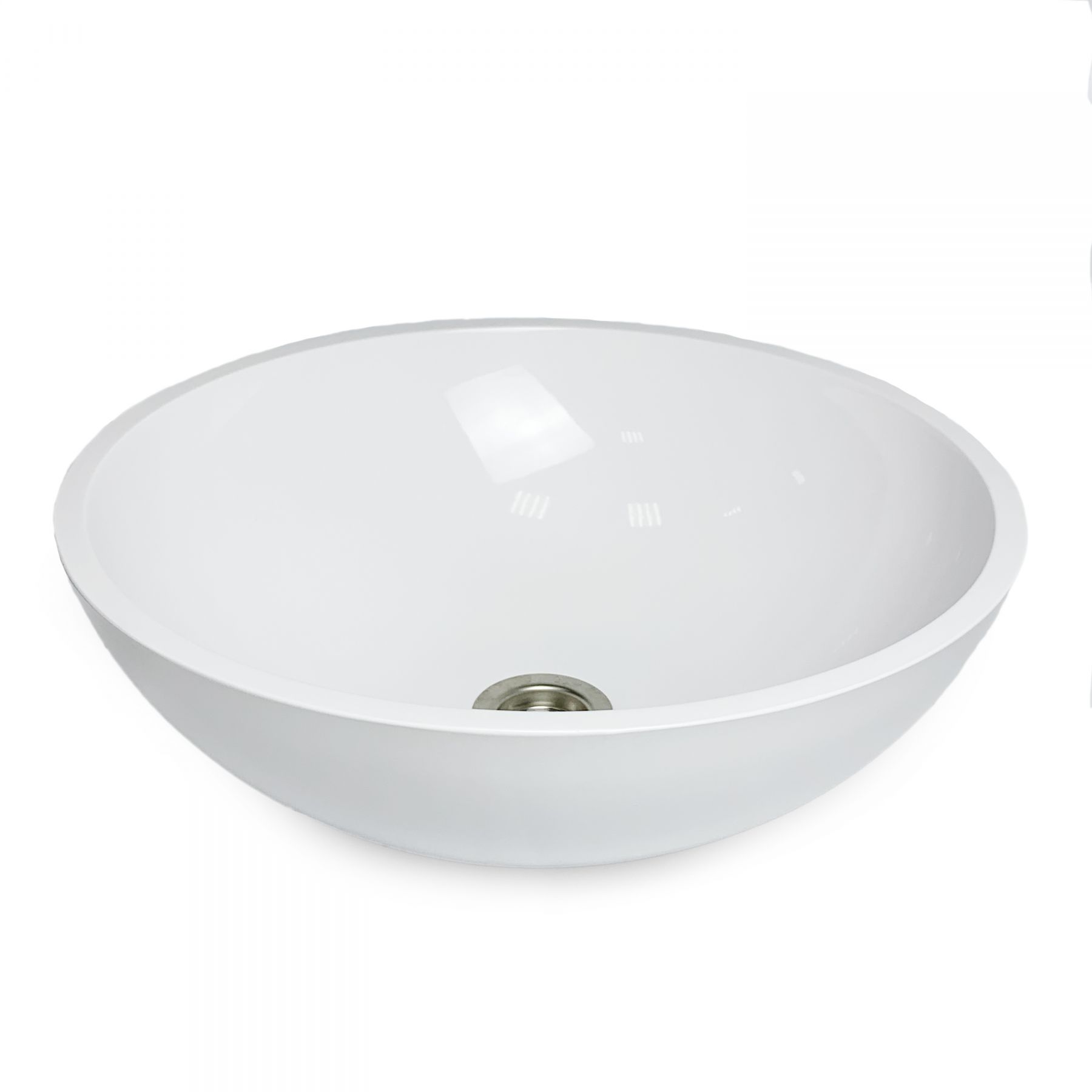Раковина, умивальник Adamant KREIS, штучний камінь, кругла, без отвору для змішувача та переливу, 420х150мм, накладний, білий