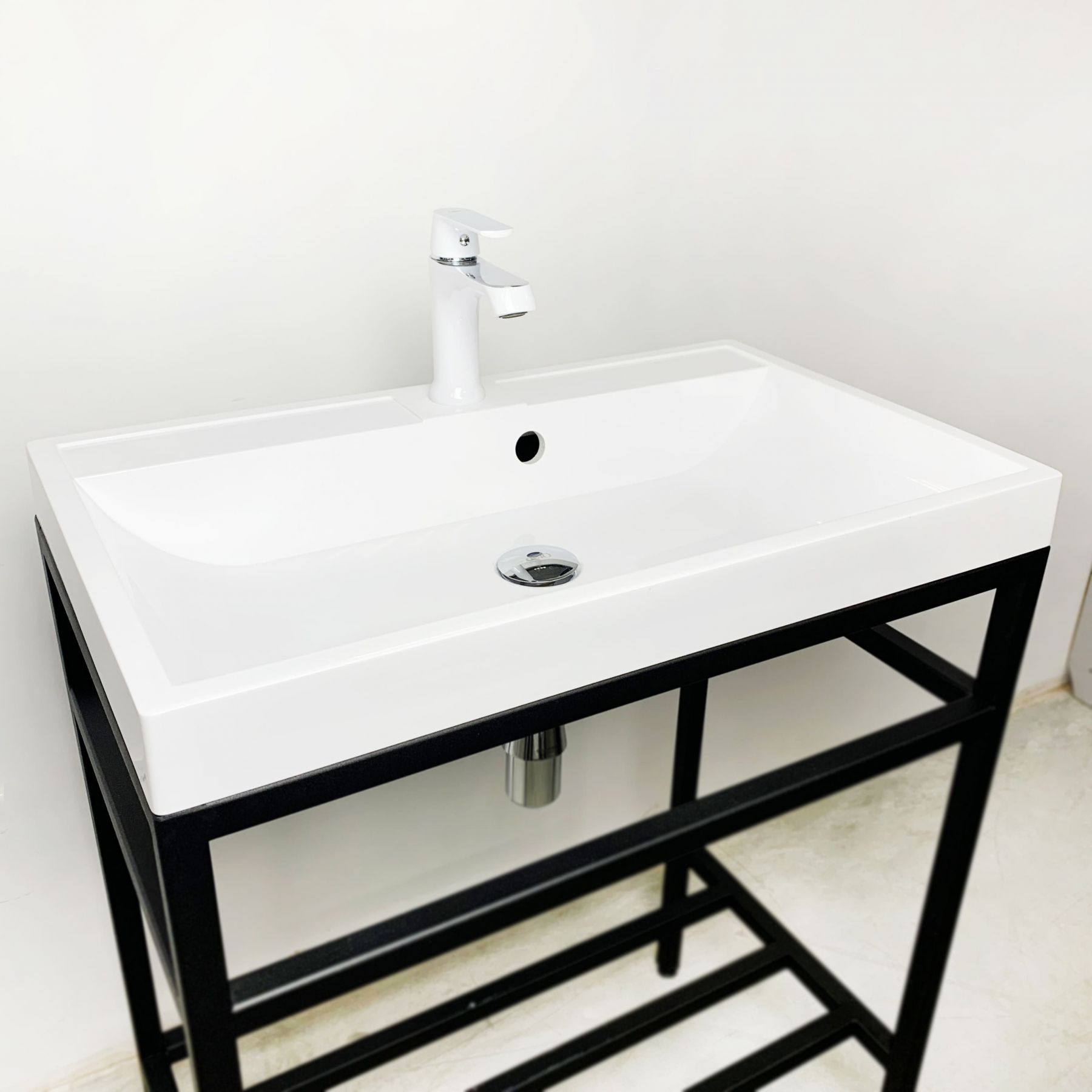Раковина, умивальник Adamant STRENG NEW, штучний камінь, прямокут., з отвором для змішувача, з отвором для переливу, 690x410x123мм, накладний, білий