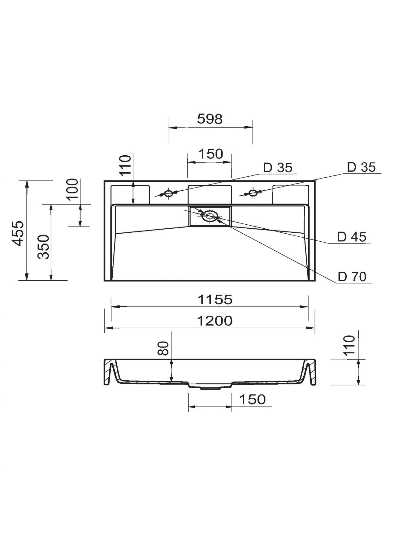 Раковина Adamant VISION має прямокутну форму, виготовлена зі штучного каменю з розмірами 1200 x 455 x 110 мм та білим кольором. Накладний тип встановлення з двома отворами для змішувача та без отвору для переливу дозволяє монтаж на тумбу. Матеріал створений за технологією Solid Surface, стійкий до впливу та довговічний.