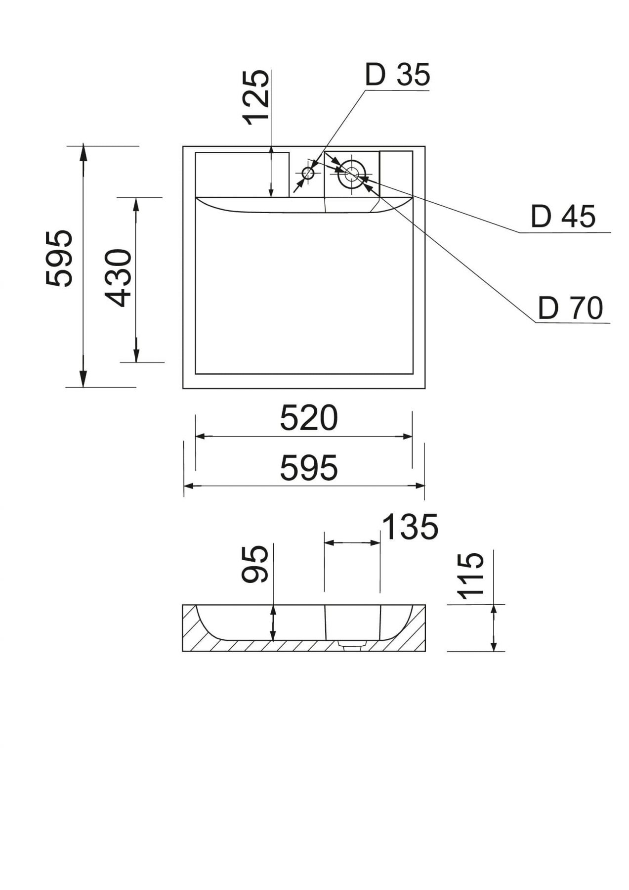 Раковина, умивальник Adamant WASHER NEW, штучний камінь, прямокут., з отвором для змішувача, без переливу, 595х595х115мм, накладний, чорно-білий