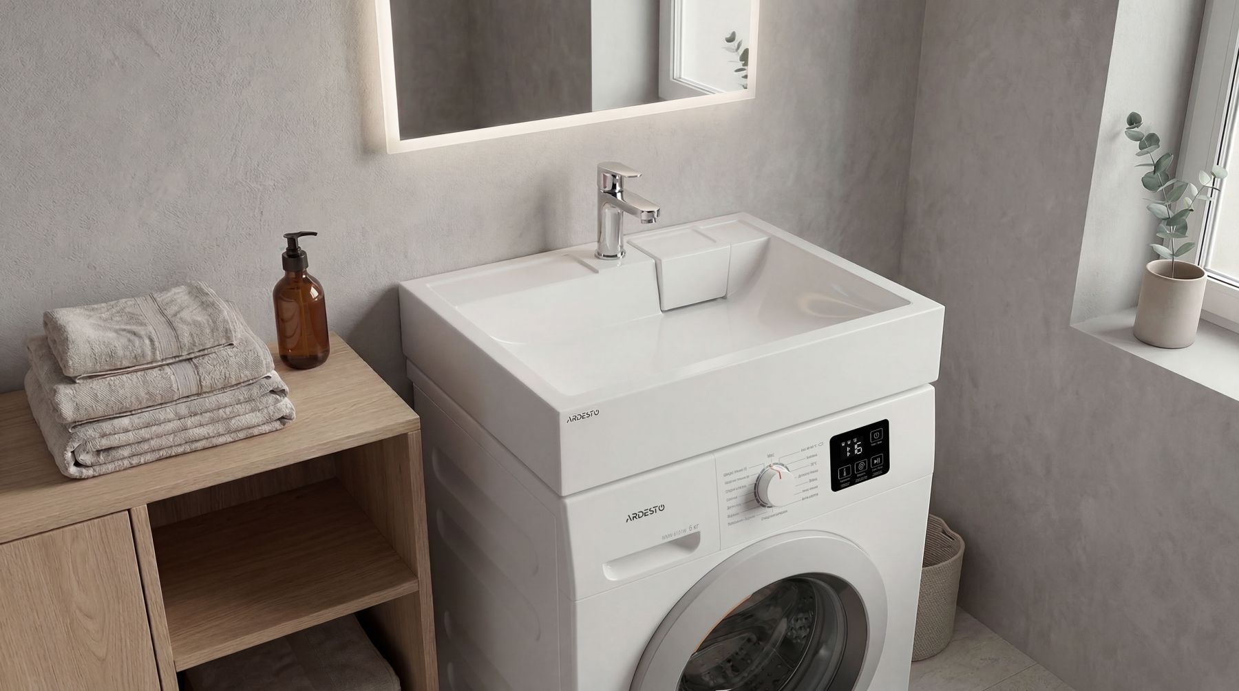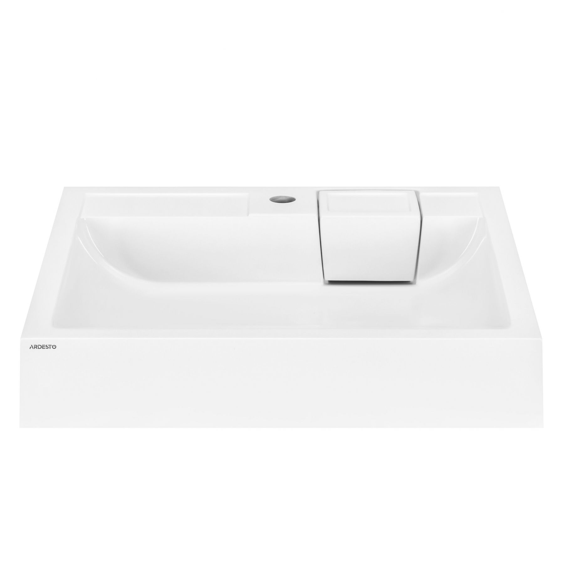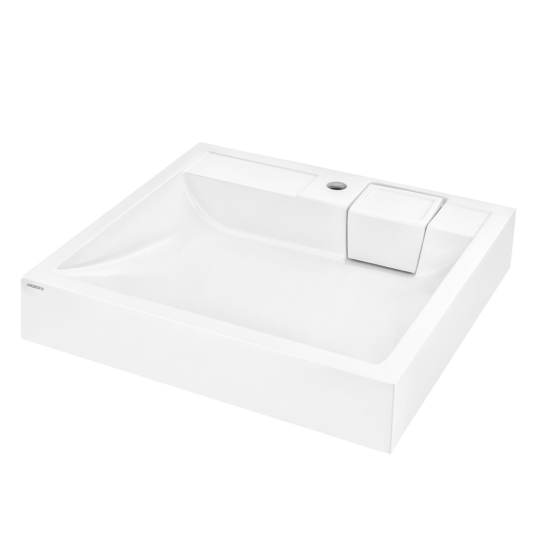 Раковина, умивальник ARDESTO Charlie, штучний камінь, прямокут., з отвором для змішувача, без переливу, 595х595х115мм, накладний, білий