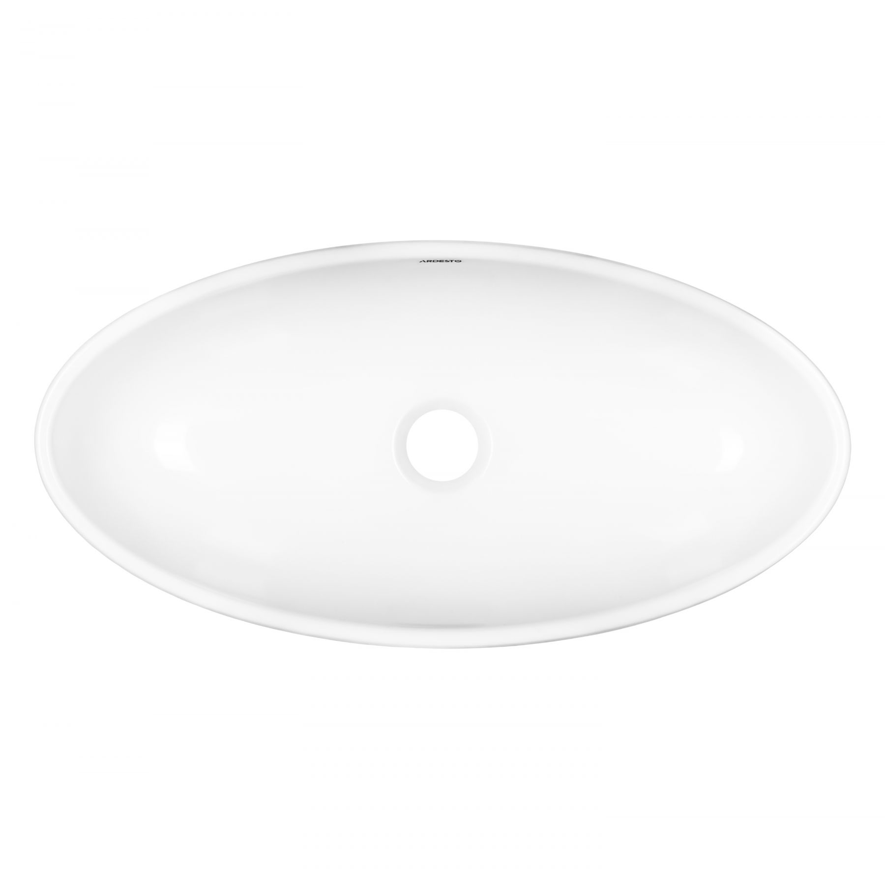Раковина, умивальник ARDESTO Madeleine, штучний камінь, овальна, без отвору для змішувача та переливу, 590х295х130мм, накладний, білий