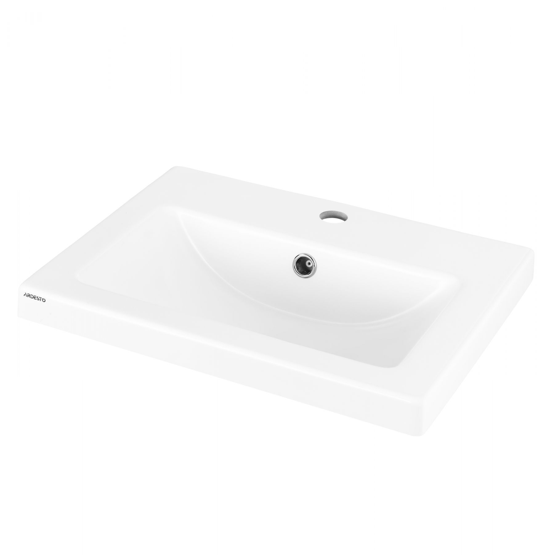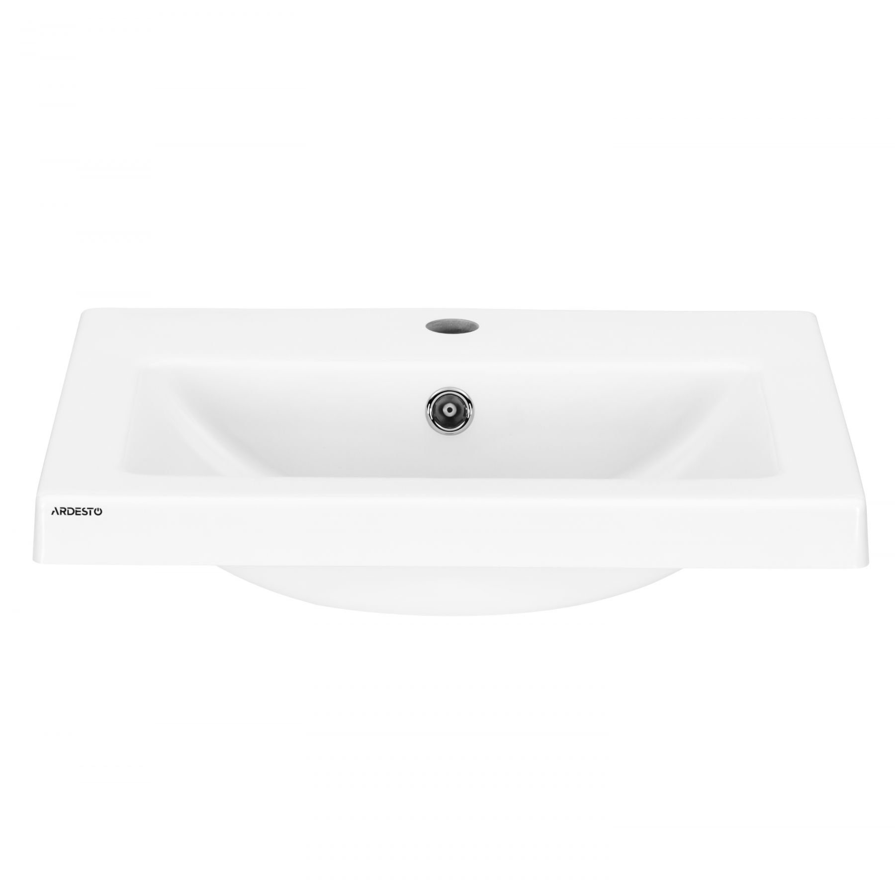 Раковина, умивальник ARDESTO Sati, штучний камінь, прямокут., з отвором для змішувача, з отвором для переливу, 595x450x158мм, накладний, білий
