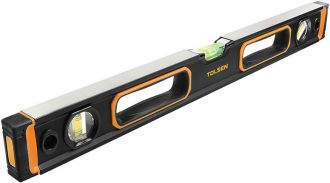 Рівень Tolsen Профі, 120см, 3 капсули, алюмінієвий, з магнітами, отвори для руки