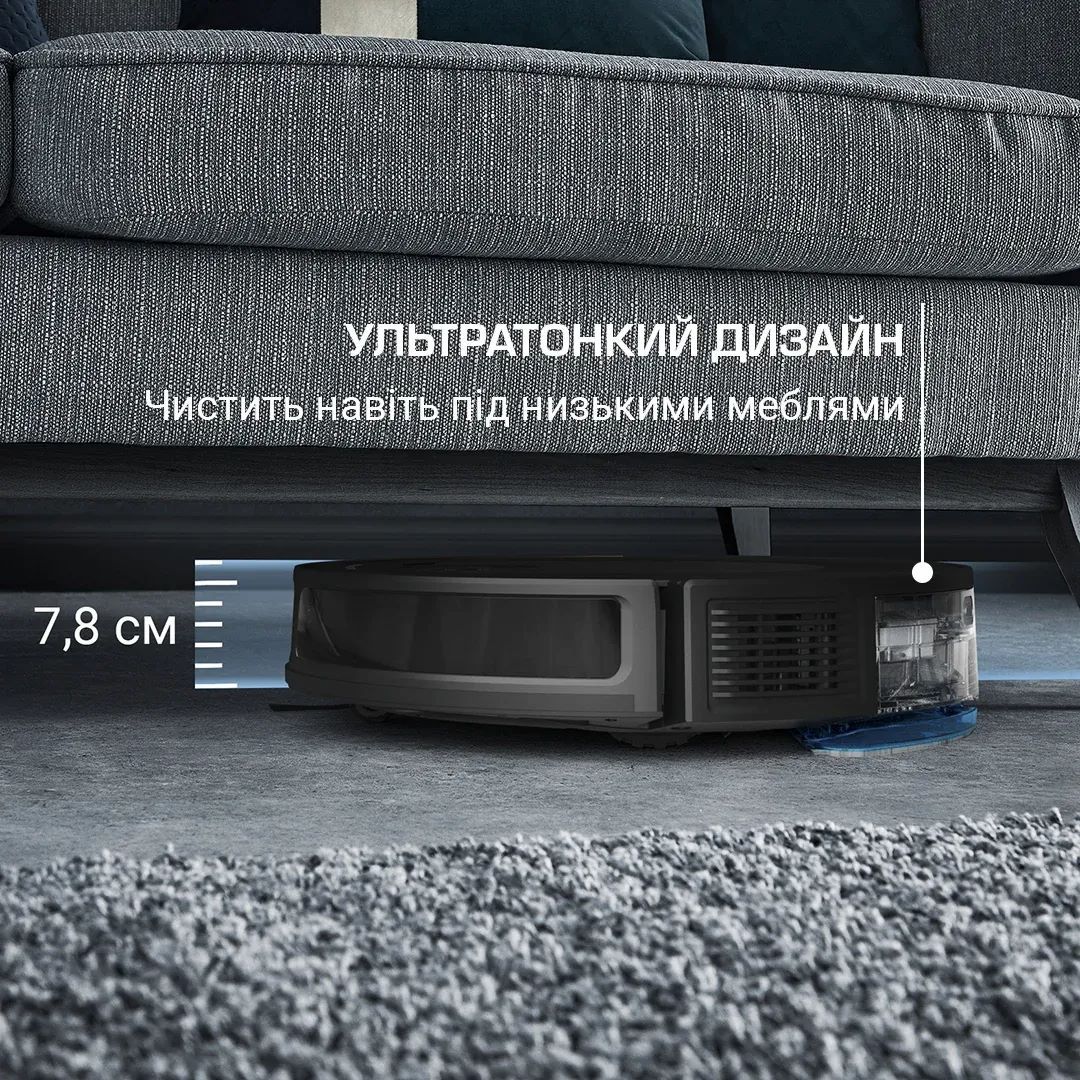 Додатково:4 режими, Керування через смартфон, Електронна подача води, запам'ятовування кількох поверхів, висота подолання порогів 18 мм, встановлення на зарядження, Прибирання за графіком, Навігаційна система - лазерна камера