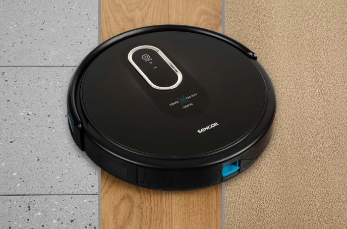 Робот-пилосос Sencor , 400Вт, h=7,9см, вологе прибирання, конт пил -0,45л, вода -0,24л, автон. робота до 120хв, вага-2,5кг, НЕРА, чорний