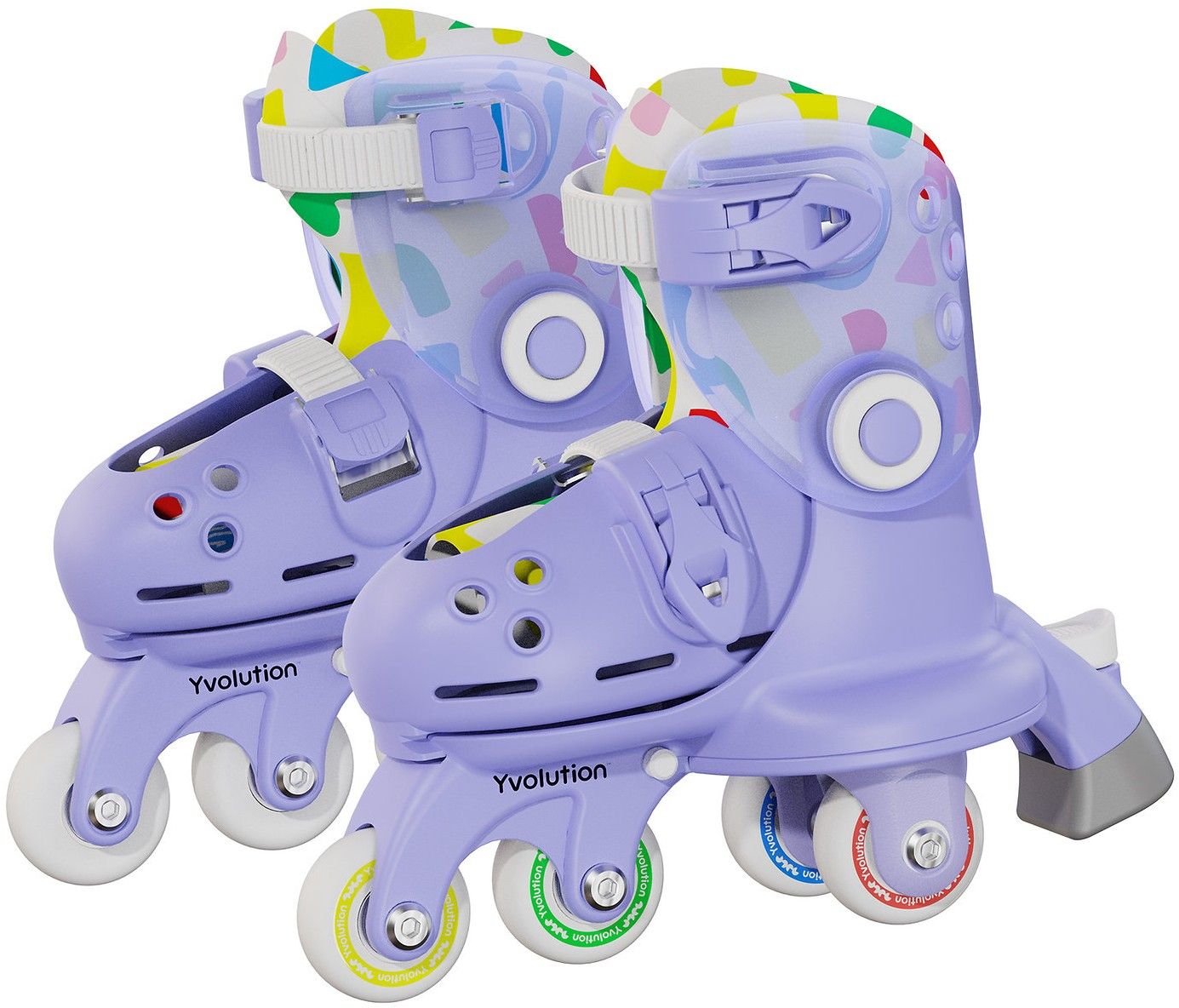 Ролики Yvolution Switch Skates дозволяють дитині навчитися кататися з раннього віку. Ця модель регулюється в 4-х розмірах (від 24 до 28). Стабільні, завдяки паралельним колесам, ці ролики дозволяють вашій дитині зберігати рівновагу. Для того щоб розташувати колеса в одну лінію - достатньо лише натиснути кнопку і мчати вперед.
