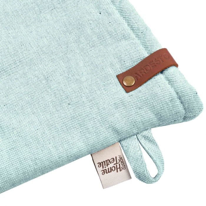 Рукавичка ARDESTO Oliver – незамінний помічник під час готування! Виготовлений із якісної 100 % бавовни, виріб має розмір 18 × 30 см і виконаний у стильному бірюзовому кольорі. Ватиновий наповнювач – запорука безпеки, адже надійно захистить від впливу високих температур. Для збереження первинного вигляду рукавички варто дотримуватися рекомендацій щодо догляду: прати в машині за делікатного режиму (30 °C); не сушити в сушильній машині, а тільки у вертикальному положенні; прасувати за температури до 150 °C; також заборонено відбілювання та хімчистка.