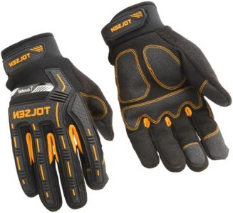 Рукавички робочі Tolsen, штучна шкіра, захист від порізів, р.10/XL, чорно-помаранчевий