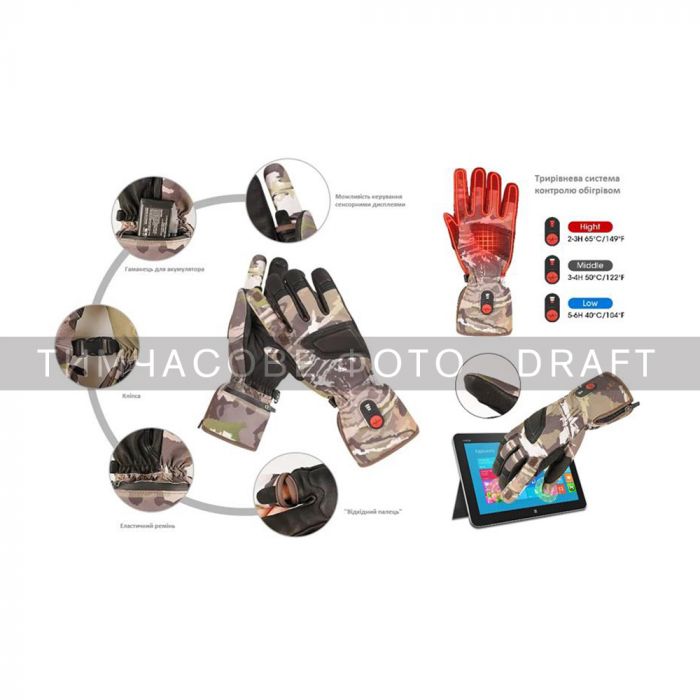 Рукавиці з підігрівом 2E Hunter Camo, розмір S