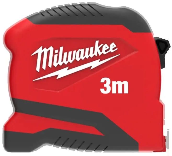 Рулетка Milwaukee Pro Compact 3 м × 19 мм (4932498776) — компактна професійна рулетка з автоматичним фіксатором змотування та лезом з покриттям для довговічності. Корпус із ударостійкого АБС-пластику з гумовими вставками витримує падіння з 2 м. Лезо шириною 19 мм з позначками на 1/8 та 1/16 дюйма, подвійна шкала (метрична та дюймова). Магнітний кінець точно фіксує на металі, вага 0.24 кг для зручного носіння. Висота рулетки 75 мм, ширина 60 мм, довжина 40 мм — поміщається в кишеню.
