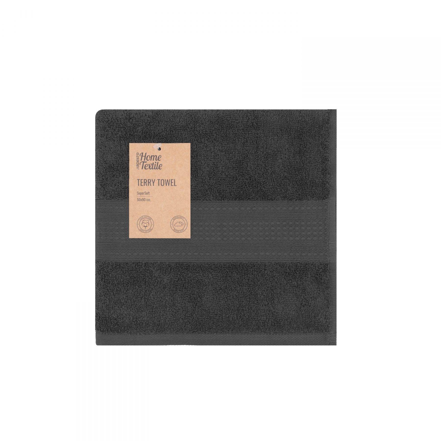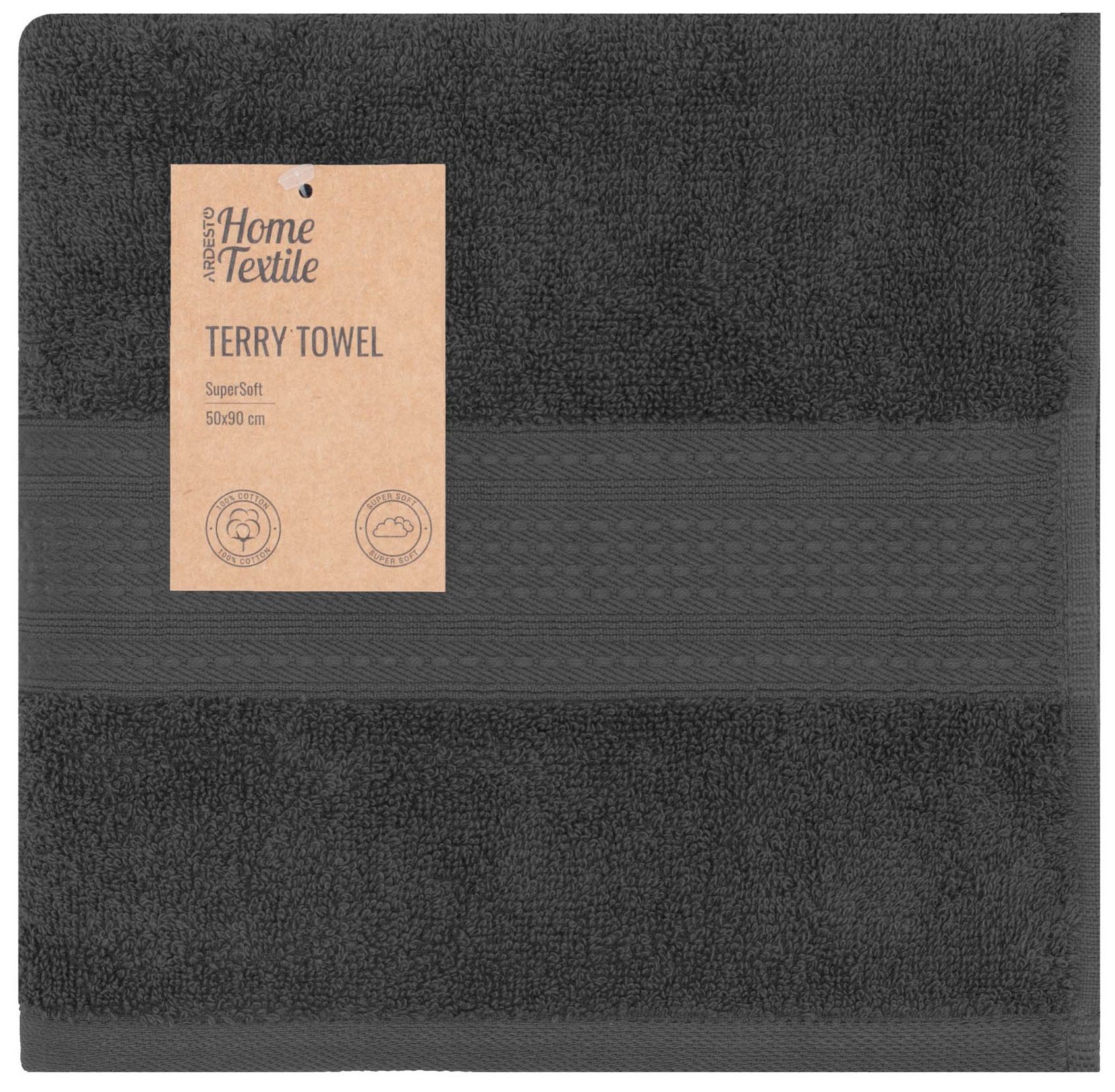Рушник махровий Ardesto SuperSoft 50х90см, 100% бавовна, сірий темний