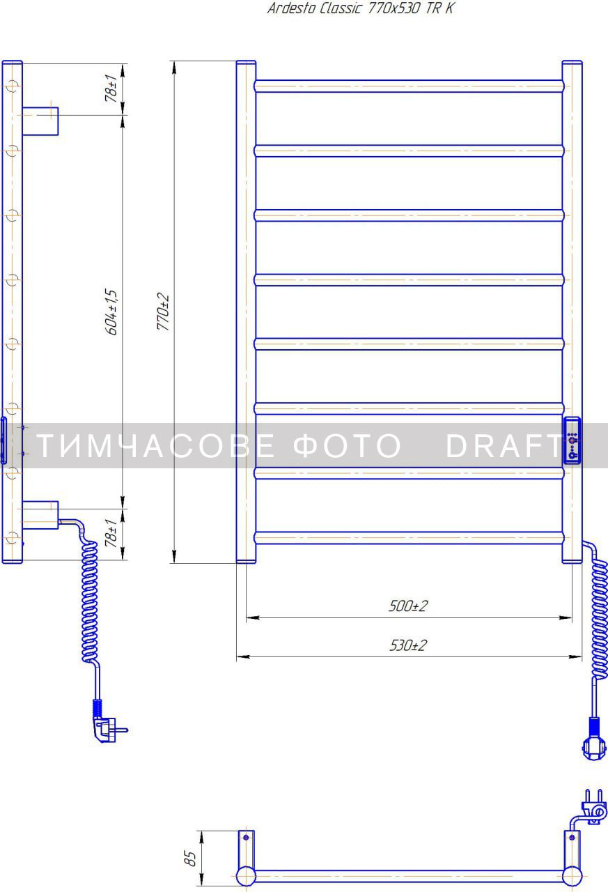Рушникосушка Ardesto електрична Classik-TR K, 770x530х80мм, таймер-регулятор, сталь, чорний матовий