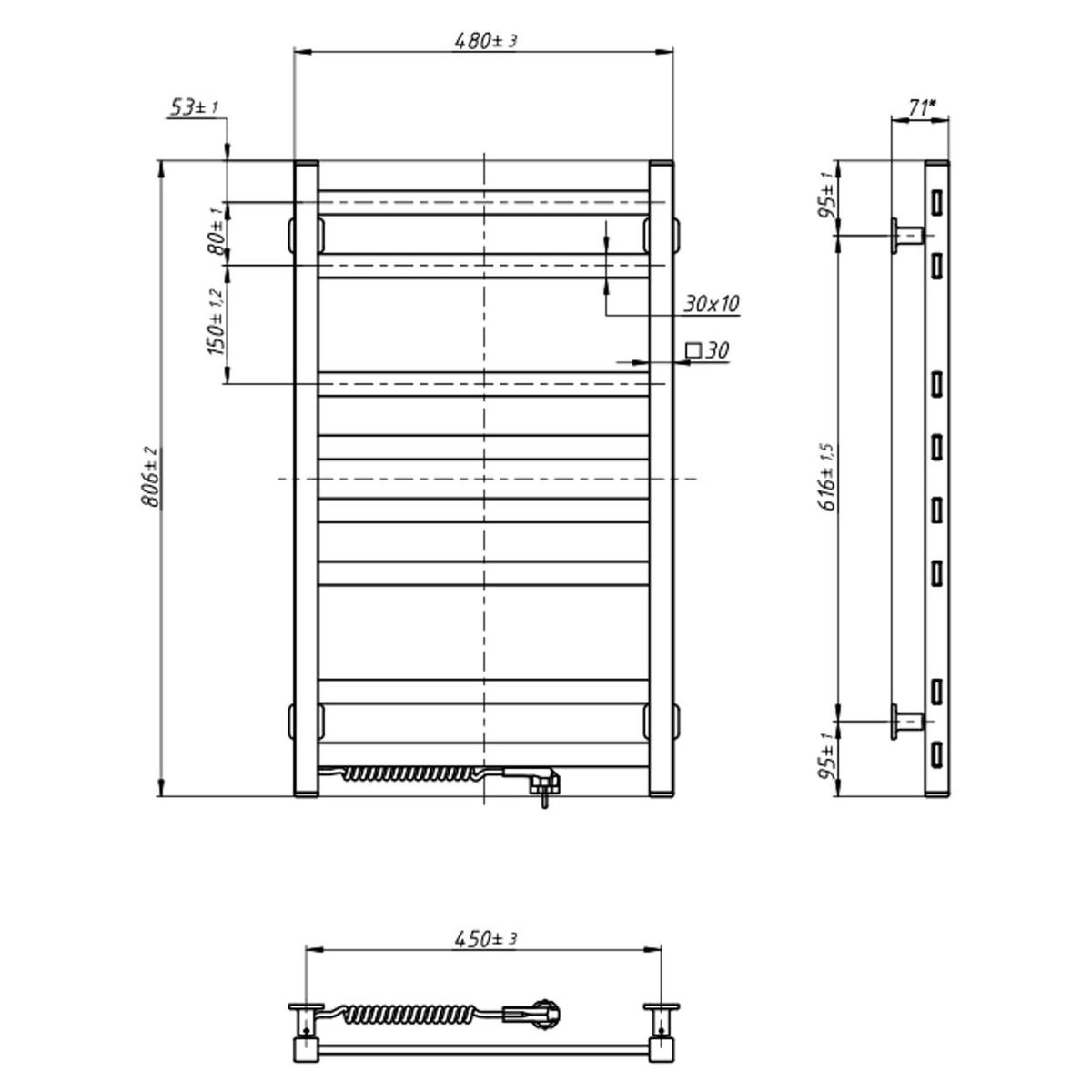 Електрична сушарка для рушників NAVIN Авангард — яскравий зразок мінімалізму. Модель має бічні колектори (стійки), виконані з профільної квадратної труби 30х30 мм, а перемички — з прямокутних трубок 30х10 мм. Це створює просту, строгу й доконечно привабливу геометричну гармонію. Продумане розташування й оптимальні розміри елементів надають рушникосушкам Авангард лаконічність, монументальність і однозначність форми.