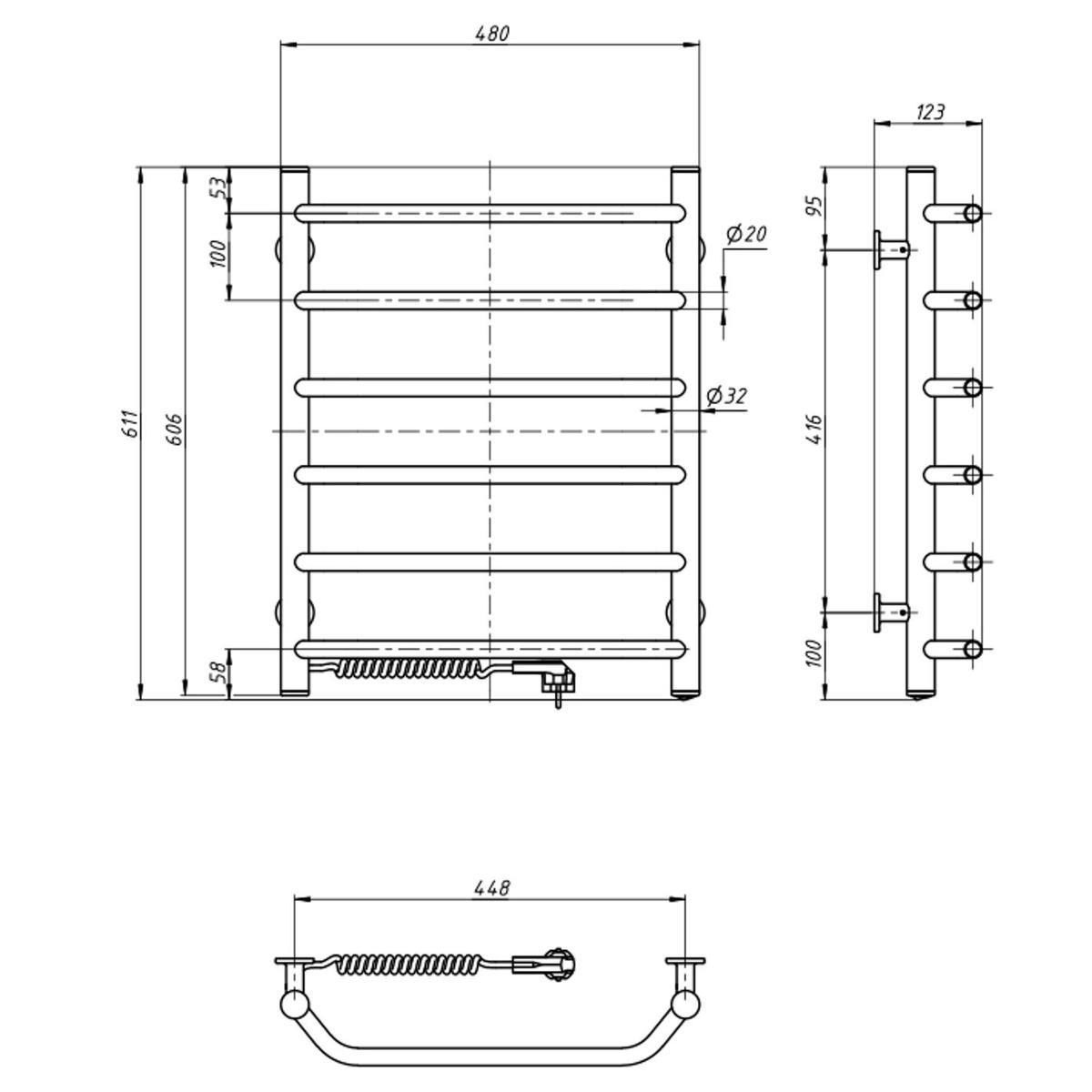 Рушникосушка Navin електрична Блюз, 600х480х123мм, кнопка, сталь, білий, ліве підключення
