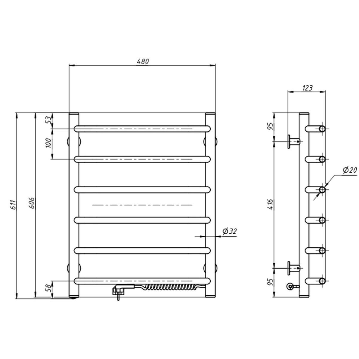 Рушникосушка Navin електрична Блюз, 600х480х123мм, кнопка, сталь, білий, праве підключення