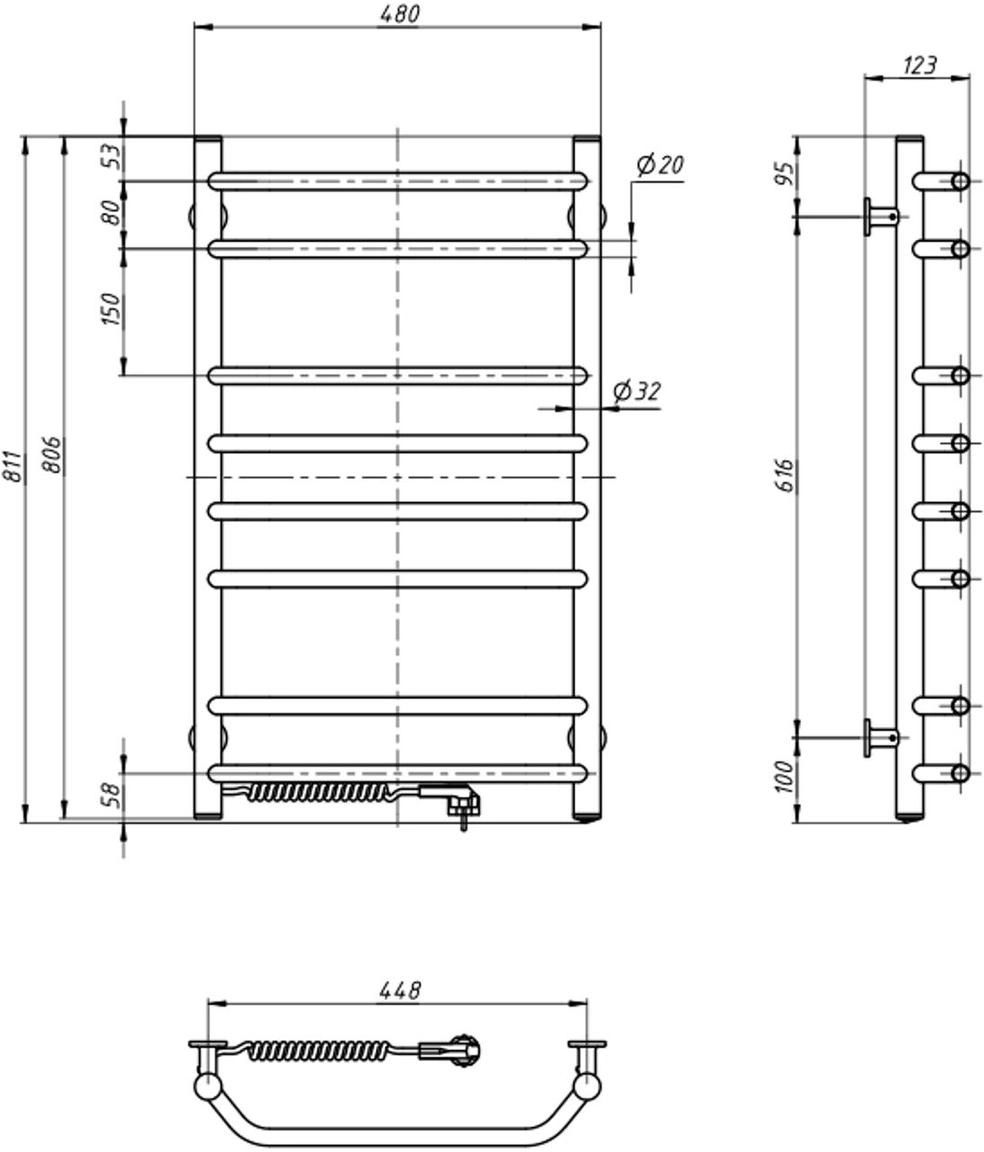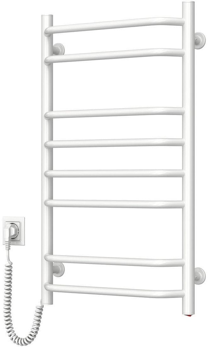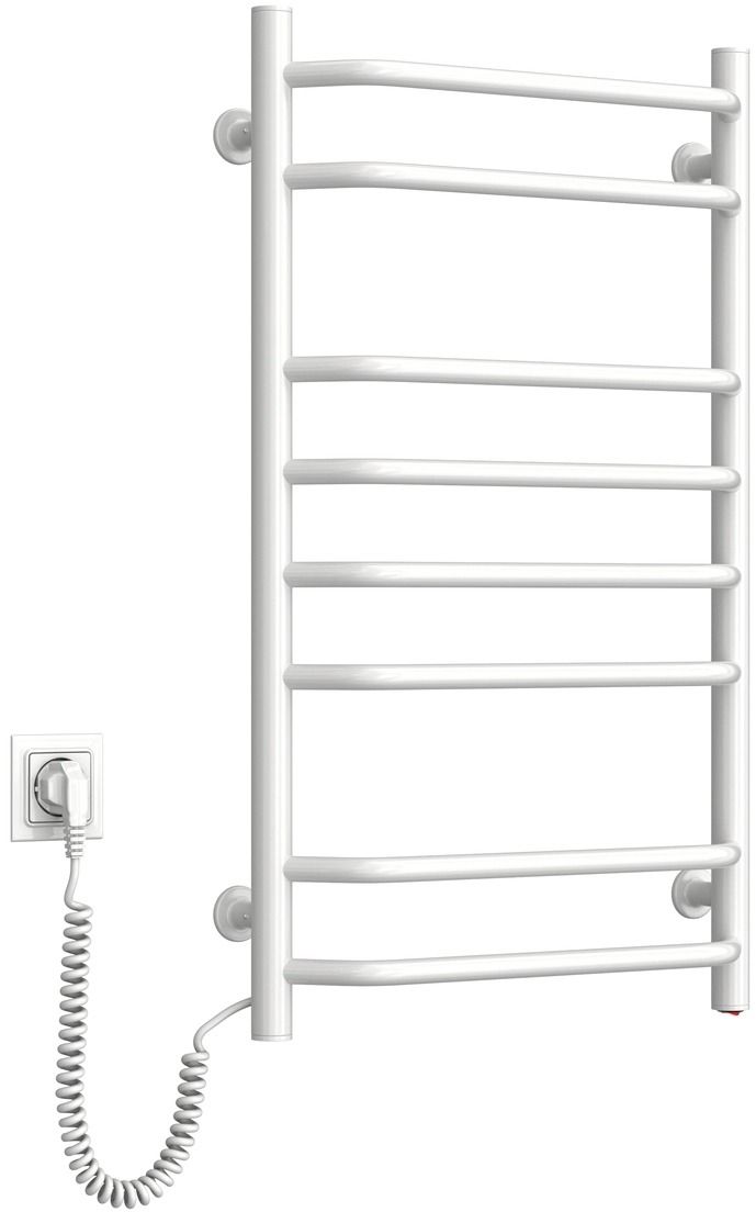 Електрична рушникосушка Navin Блюз 800×480 мм з лівим підключенням, виготовлена з фарбованої сталі. Має 8 секцій, потужність 142 Вт, ступінь захисту IP44. Максимальна температура – 55°C. Без терморегулятора, кріпиться стаціонарно.
