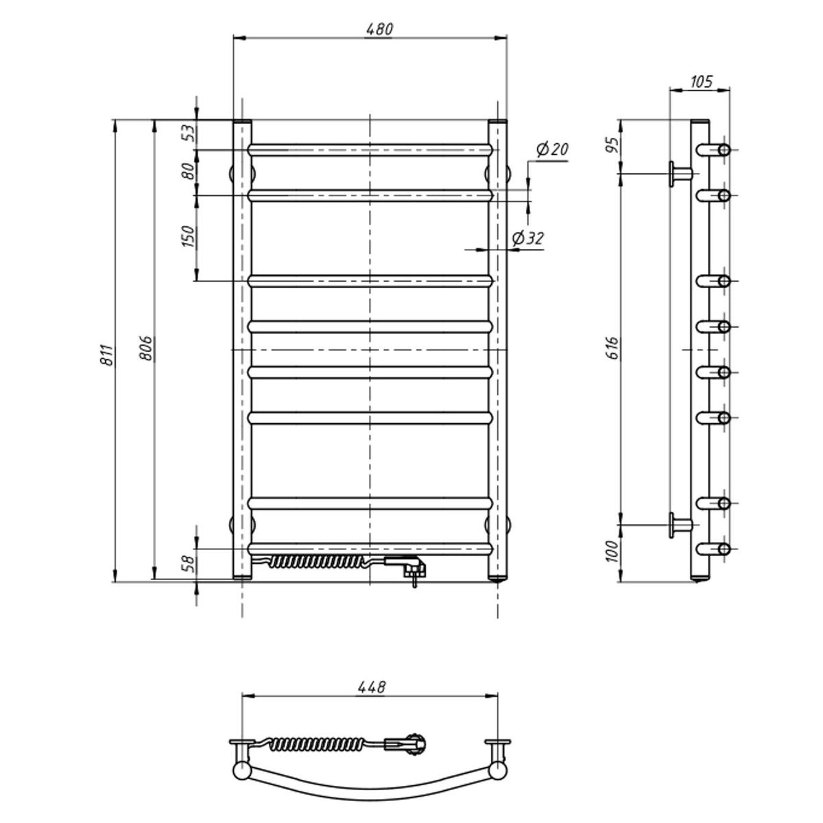 Електрична рушникосушка Камелія 480х800 від українського виробника NAVIN виготовлена з вуглецевої сталі, яка відрізняється високою якістю і міцністю. Модель має порошкове покриття. Товщина стінки перемичок рушникосушарки складає 1,5 мм, а стійок 2 мм.