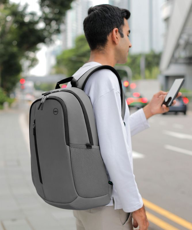 Рюкзак Dell EcoLoop Urban 14–16, розроблений для організації та комфорту, створений із турботою про навколишнє середовище та легко доповнює будь-який спосіб життя.