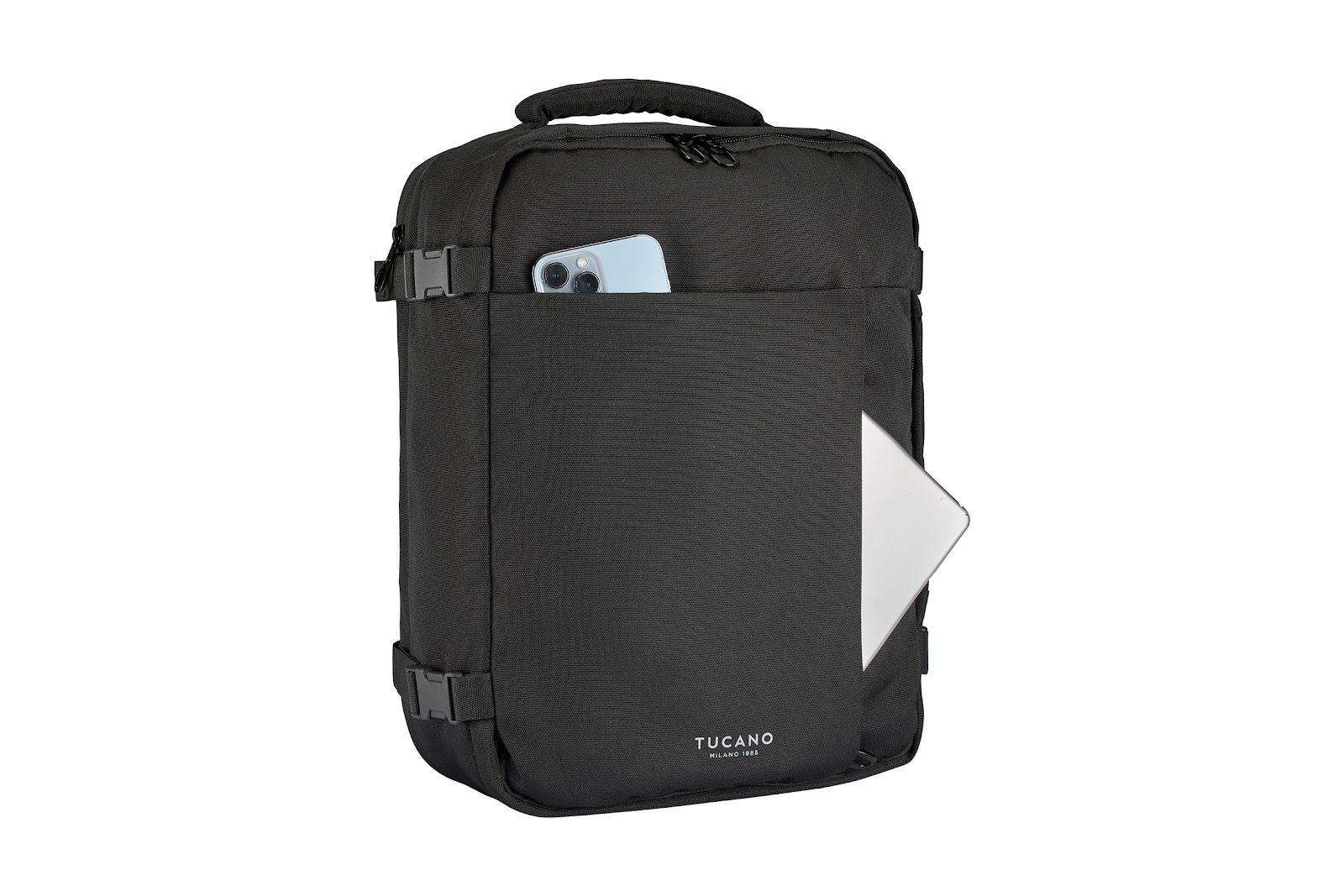 Дорожній рюкзак Tucano TUGO 3 M CABIN 16" створений для поїздок з ручною поклажею та відповідає вимогам авіаперевізників щодо габаритів. Конструкція третього покоління серії TUGO поєднує компактні розміри й продуману внутрішню організацію. Основне відділення об’ємом 23 л вміщує особисті речі та фіксує їх притискними пасками. Окремий відсік для ноутбука розміщений на задній стінці для швидкого доступу під час перевірок. Рюкзак доповнений елементами безпеки та зручності для подорожей різними видами транспорту.