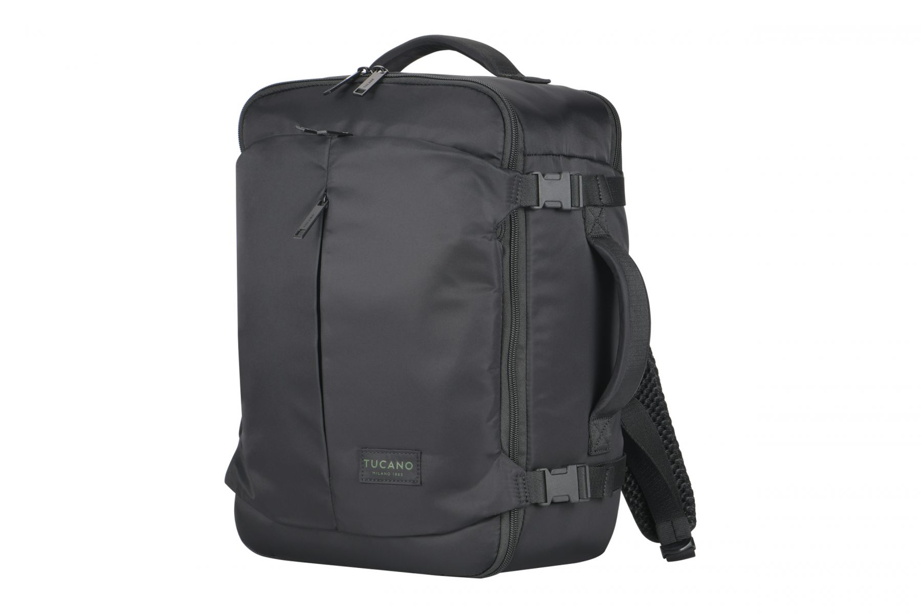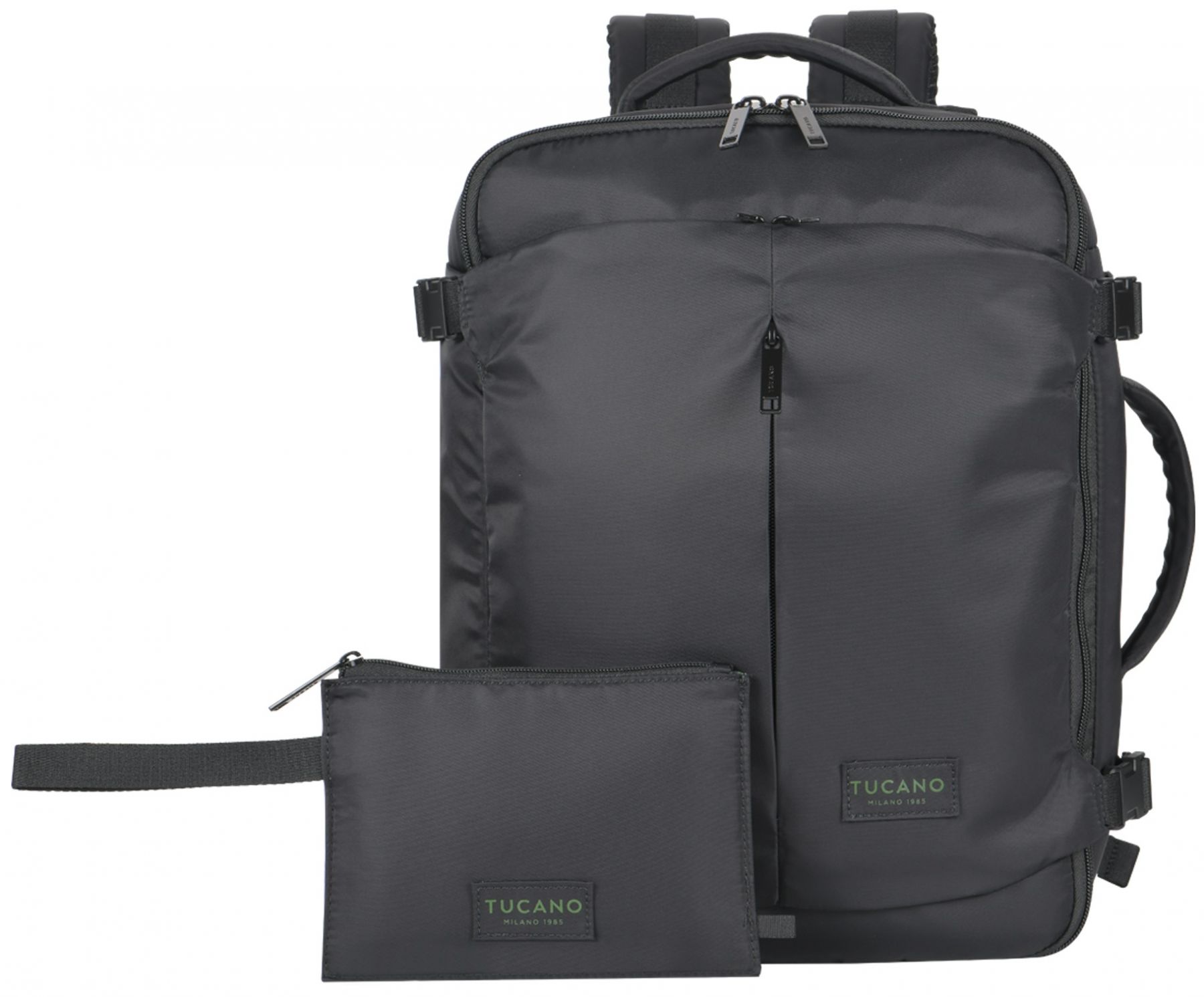 Tucano Tugò Premium M — дорожній рюкзак об’ємом 23 л, орієнтований на перельоти бюджетними авіакомпаніями. Формат CABIN відповідає вимогам до ручної поклажі lowcost-перевізників. Водовідштовхувальний нейлон виготовлений із застосуванням волокон з переробленого пластику. Внутрішня організація передбачає окремі зони для одягу, техніки та документів. Конструкція поєднує ергономіку та впорядковане зберігання речей у дорозі.