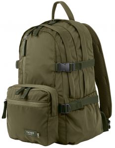 Tucano Desert 15 рюкзак з нової колекції 2022 року. Рюкзак у стилі мілітарі з тканини, виготовленої з переробленого пластику, із застібкою-куліскою та капюшоном/клапаном. Велике внутрішнє відділення, розмір якого регулюється двома ременями, оснащене кишенею для ноутбука. Вишуканий стиль і добре організовані кишені, у тому числі три спереду, а також захисна кишеня ззаду, роблять його багатогранним та універсальним для будь-якого випадку.