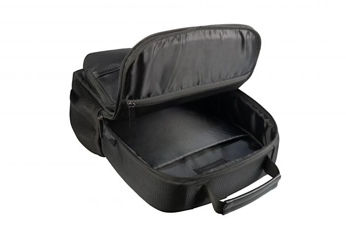 Місткий, легкий рюкзак з високотехнологічного матеріалу і вставками з екошкіри; ідеально підходить для 15,6-дюймових ноутбуків і 15-дюймових MacBook. Містке внутрішнє відділення також оснащено спеціальною кишенею для захисту ноутбука або планшета. Спереду знаходиться велика плоска зовнішня кишеня для аксесуарів на блискавці. Задня сторона з ергономічною задньою панеллю і регульованими м'якими лямками також має зручний ремінець для чемодана.