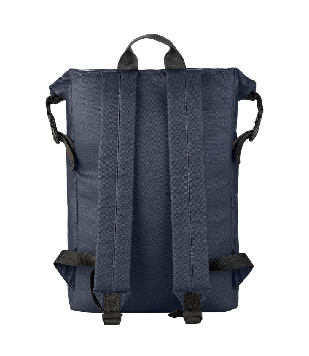Рюкзак із застібкою roll-top для ноутбуків до 15.6" і MacBook до 16", виготовлений із переробленої водостійкої тканини з покриттям. Рюкзак Rollo має великий основний відділ, внутрішню кишеню для ноутбука, зовнішню кишеню для аксесуарів та м’які регульовані лямки, що забезпечують комфорт і зручність як для роботи, так і для відпочинку.