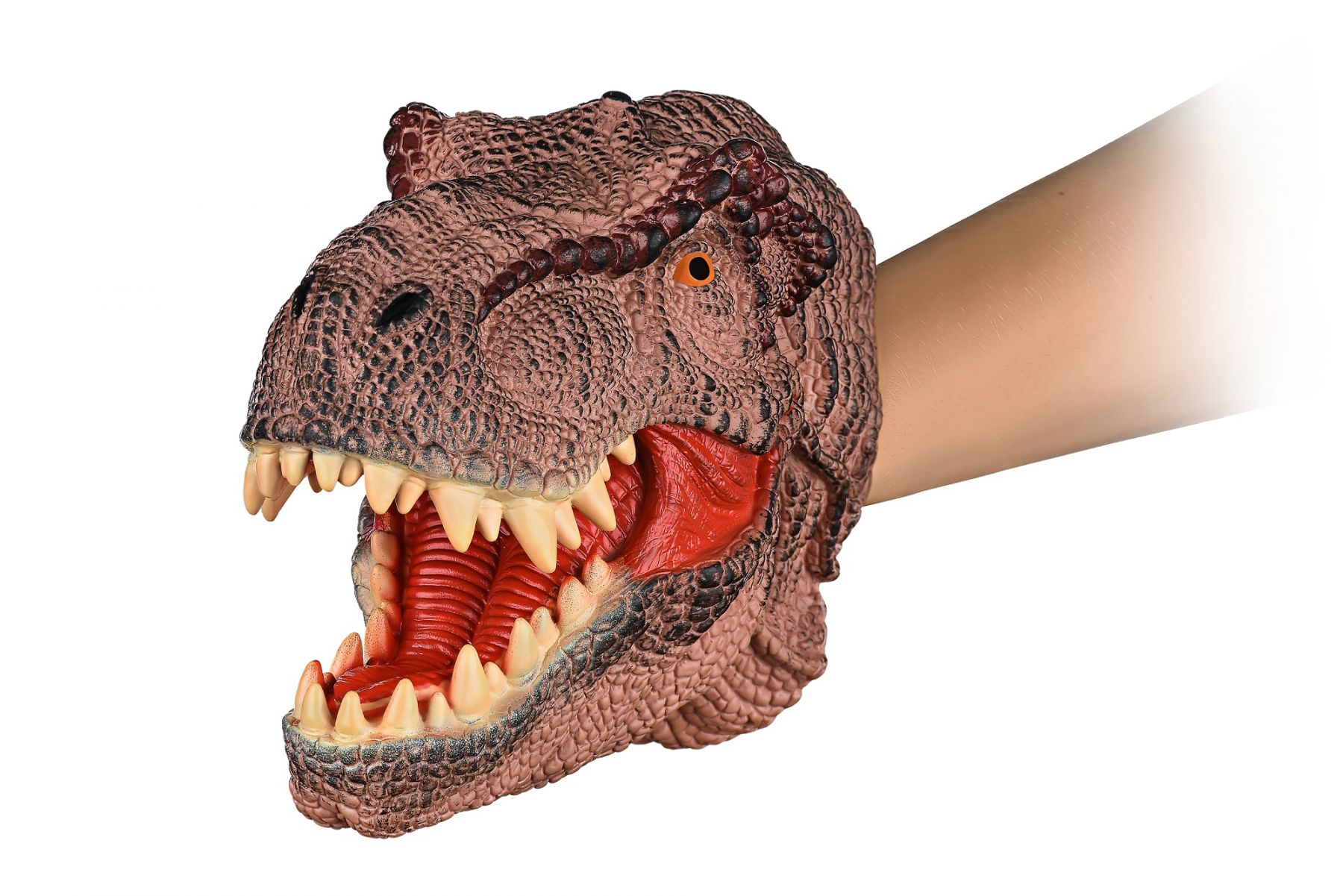 Захоплююча іграшка-рукавичка від Same Toy «Тиранозавр» урізноманітнить щоденні ігри дітей і неодмінно підніме їм настрій! Під час гри дитина навчиться розрізняти тварин, зануриться в дивовижний світ фантазії і веселих пригод. Іграшка стане відмінним подарунком, як дитині, так і дорослим. Виготовлена з безпечних гіпоалергенних матеріалів, а отвір для руки досить широкий, тому рукавичку зручно тримати під час гри. Граючи з рукавичками, діти розвивають фантазію, образне мислення і уяву, розширюють кругозір, тренують дрібну моторику. Висота 16 см., довжина рукавички 20 см., діаметр отвору для руки 12 см. Вік: 3+