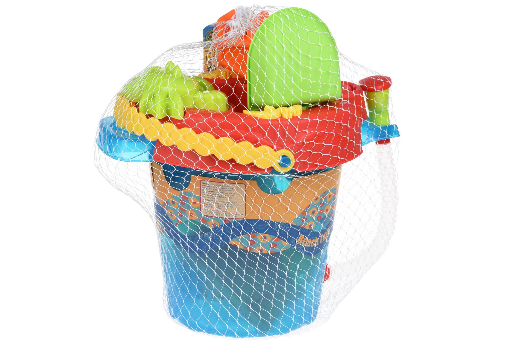 В комплекті:лопатка, пасочки, сито, граблі, піщаний млин, відро-лійка зі шлангом