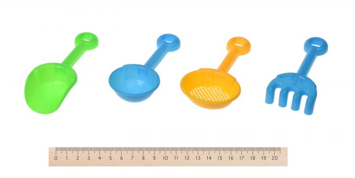 В комплекті:лопатка, пасочки, сито, граблі, відерце